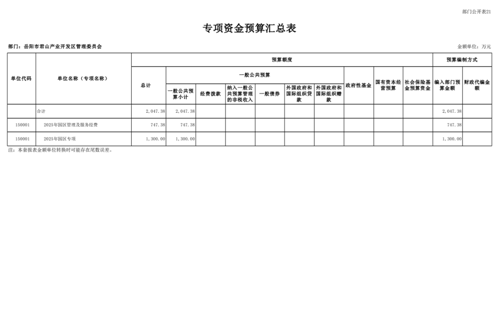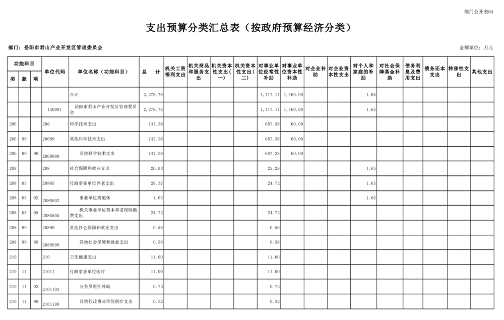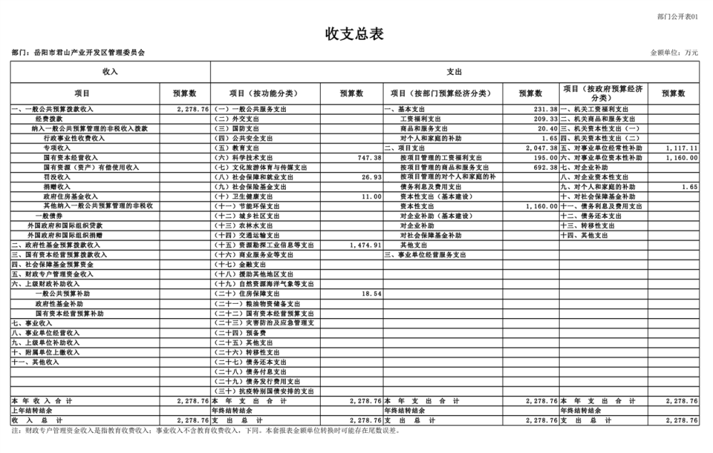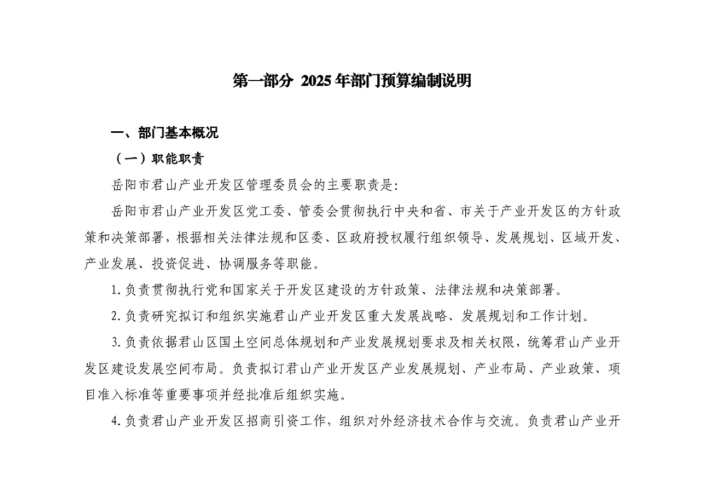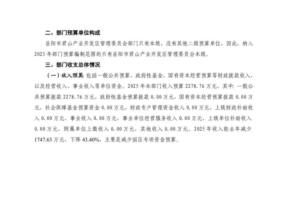 2025年岳陽市君山產(chǎn)業(yè)開發(fā)區(qū)管理委員會部門預算公開