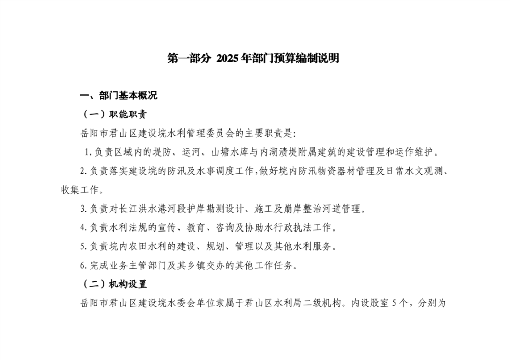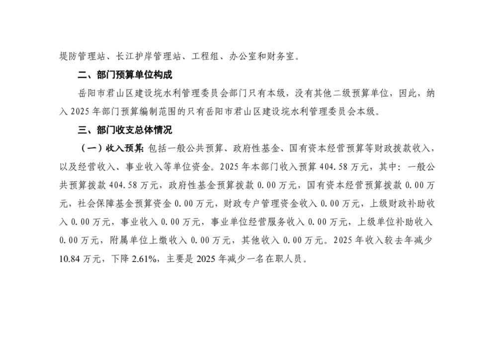 2025年岳陽市君山區(qū)建設(shè)垸水利管理委員會部門預(yù)算公開