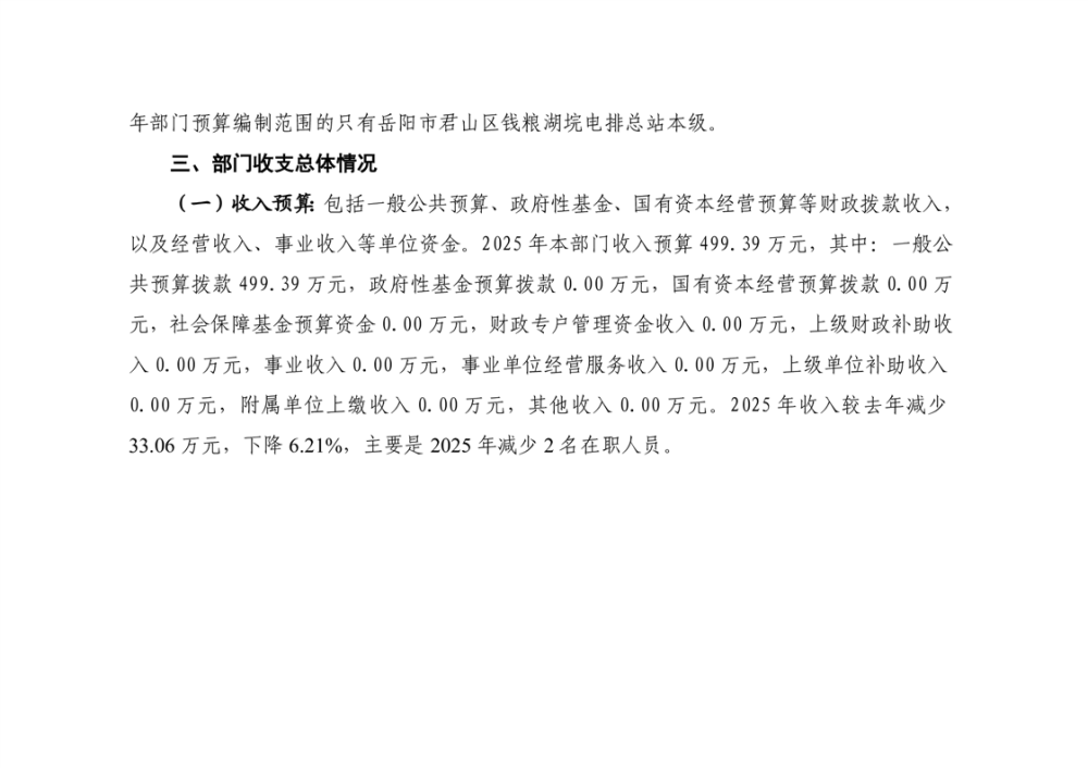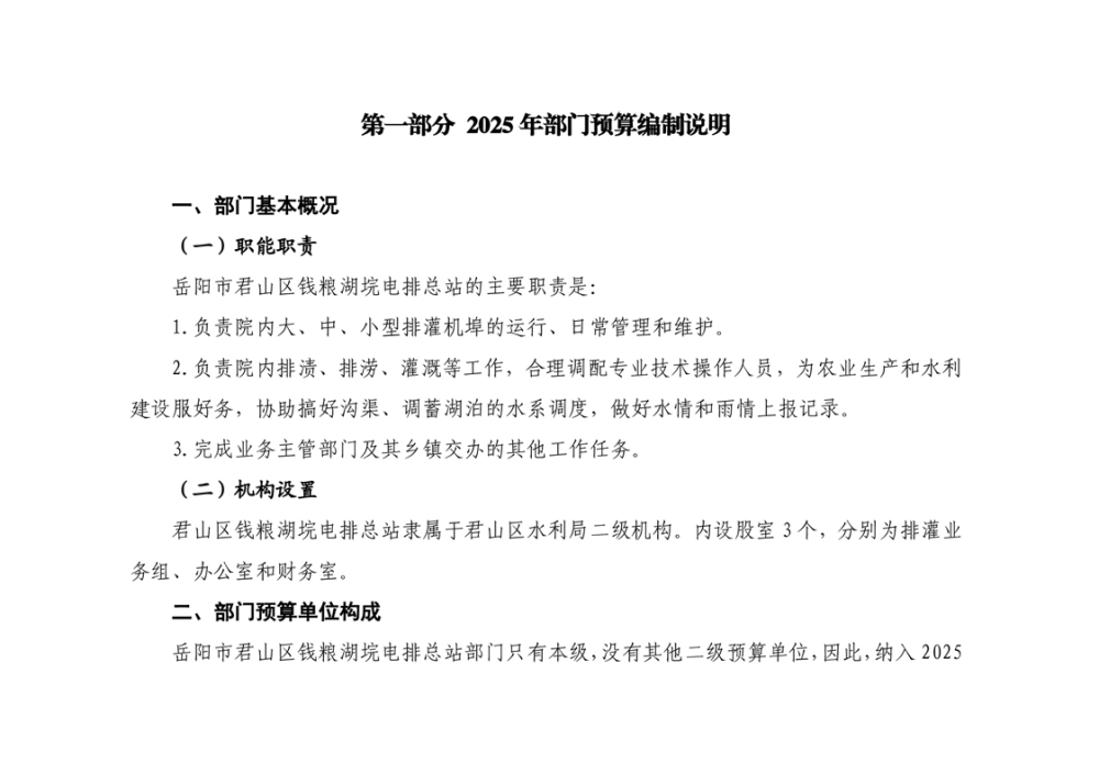 2025年岳陽市君山區(qū)錢糧湖垸電排總站部門預(yù)算公開