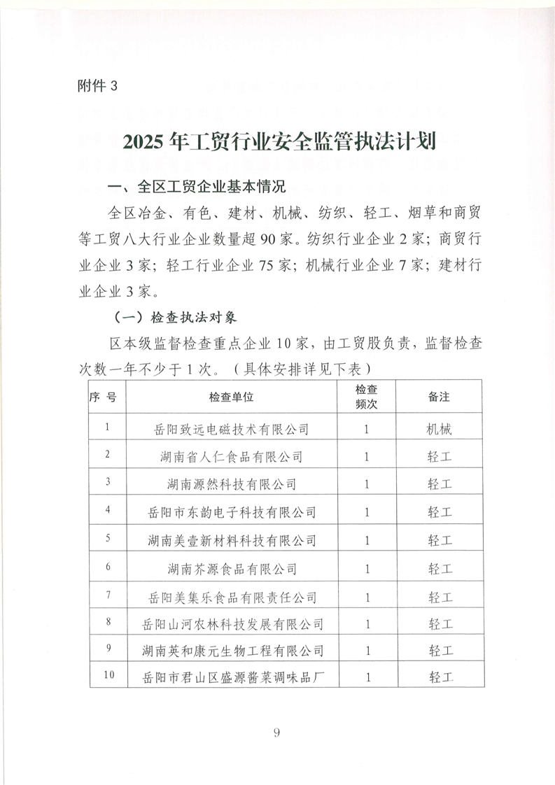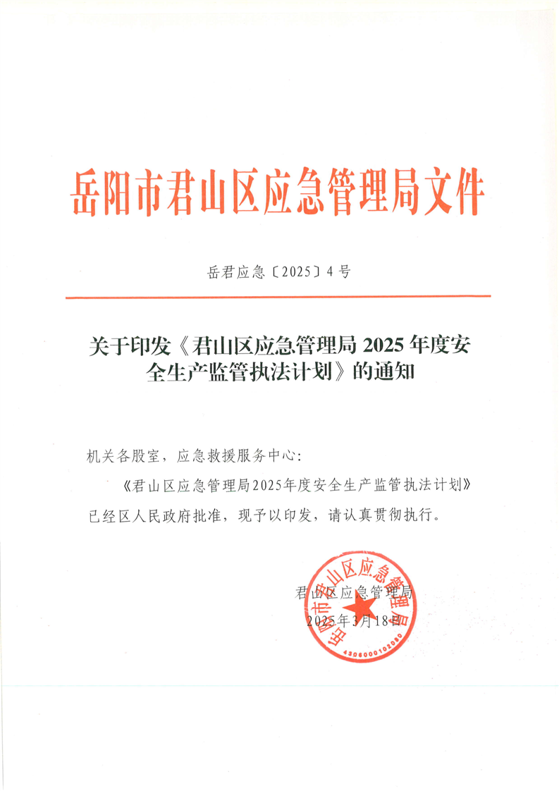 君山區(qū)應(yīng)急管理局2025年度安全生產(chǎn)監(jiān)管執(zhí)法計(jì)劃(岳君應(yīng)急【2025】4號)
