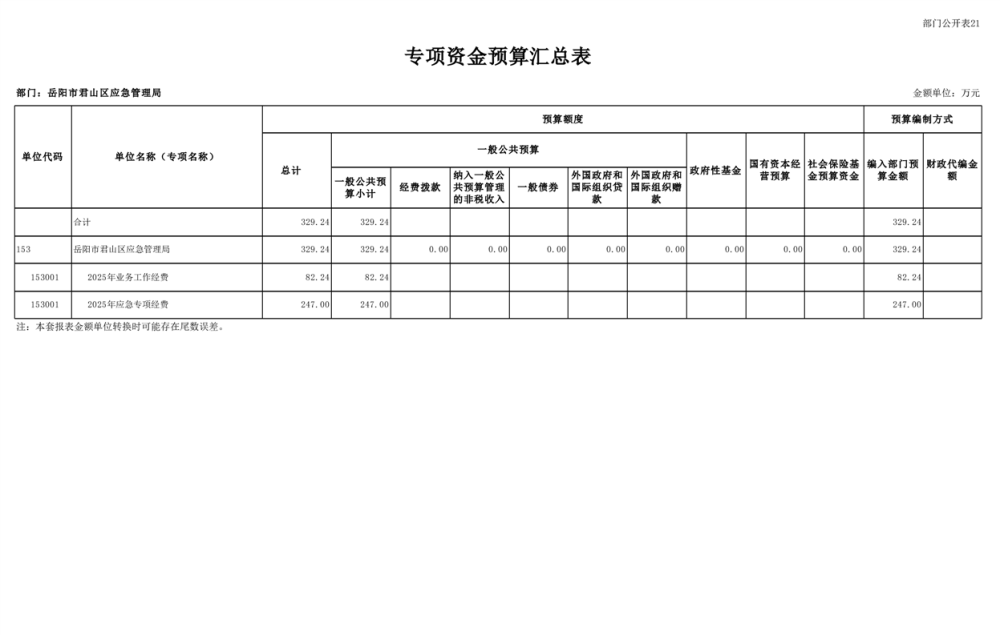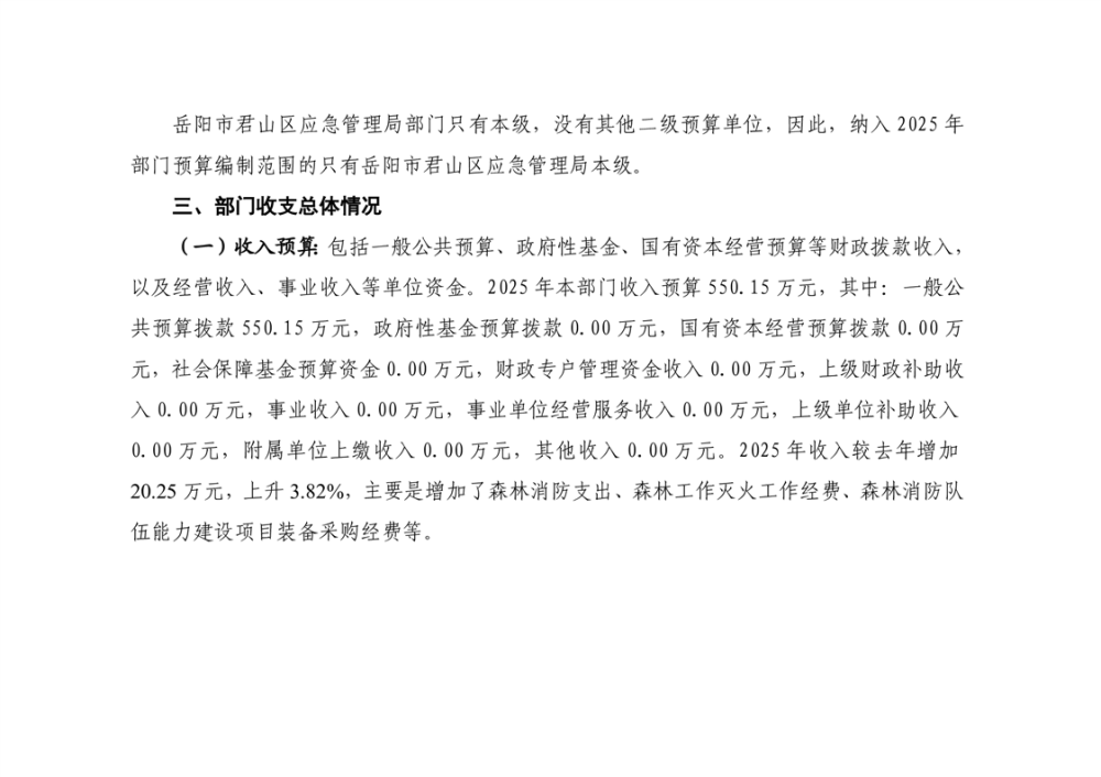 2025年岳陽市君山區(qū)應(yīng)急管理局部門預(yù)算公開