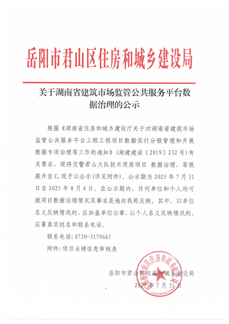 關(guān)于湖南省建筑市場監(jiān)管公共服務平臺數(shù)據(jù)治理的公示-2025年7月31日