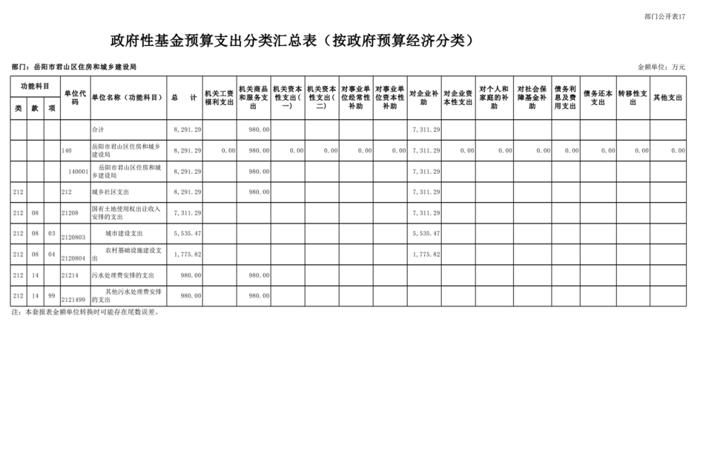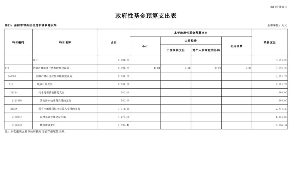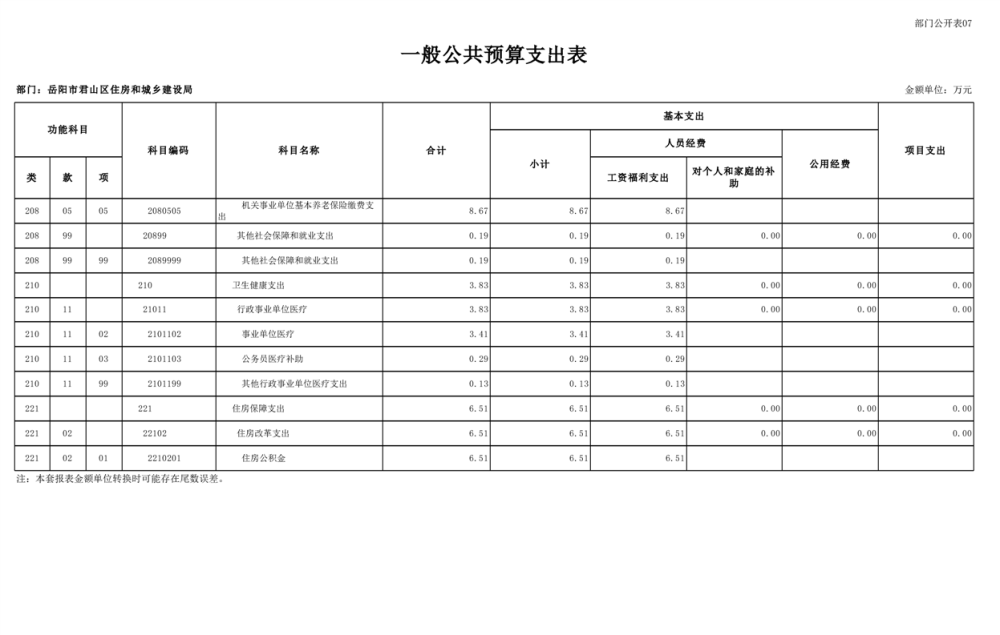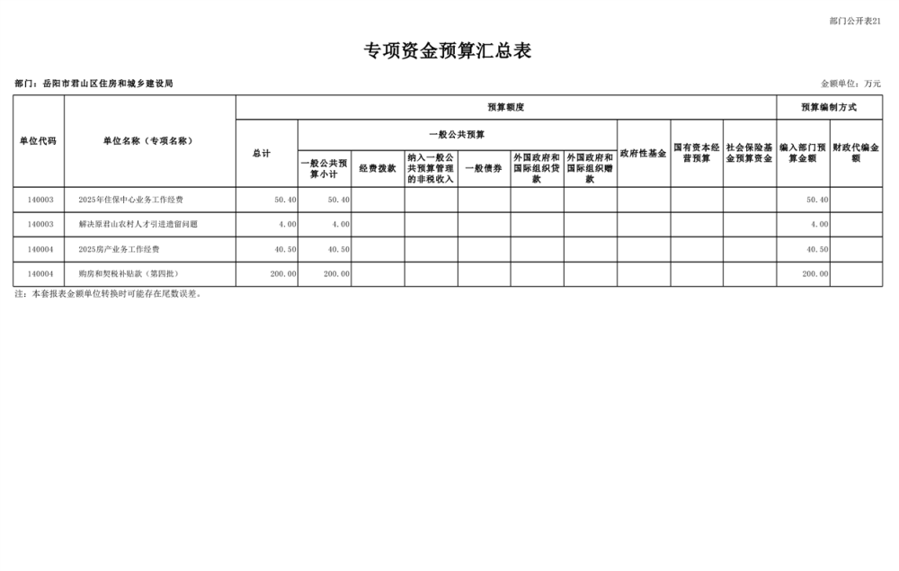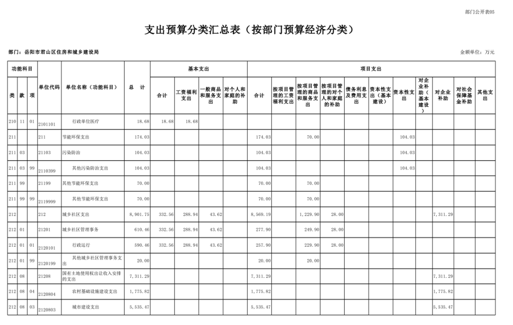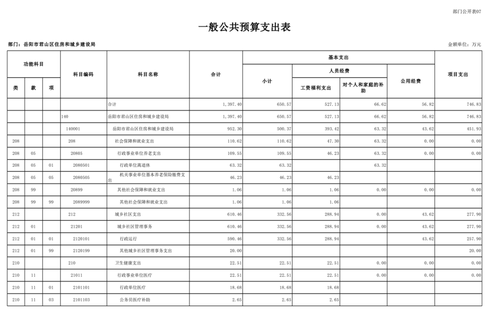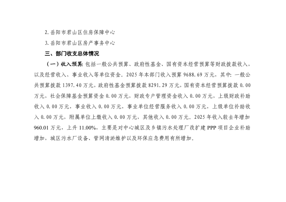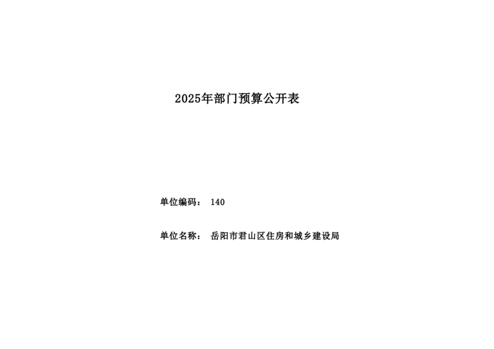 2025年岳陽市君山區(qū)住房和城鄉(xiāng)建設(shè)局(部門)預(yù)算公開