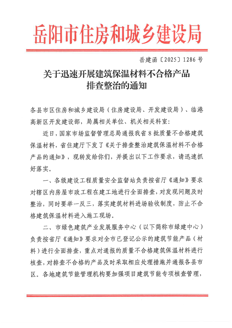 關于迅速開展建筑保溫材料不合格產(chǎn)品排查整治的通知