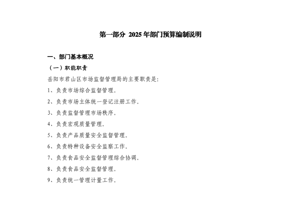 2025年岳陽市君山區(qū)市場監(jiān)督管理局部門預算公開