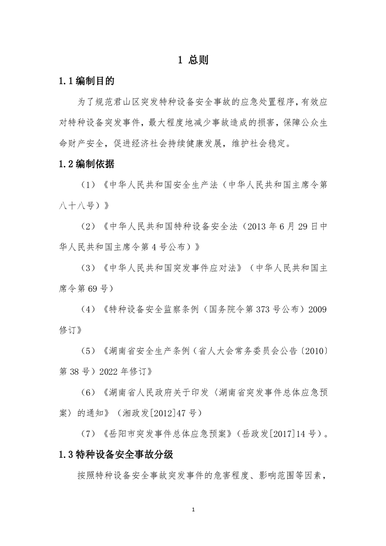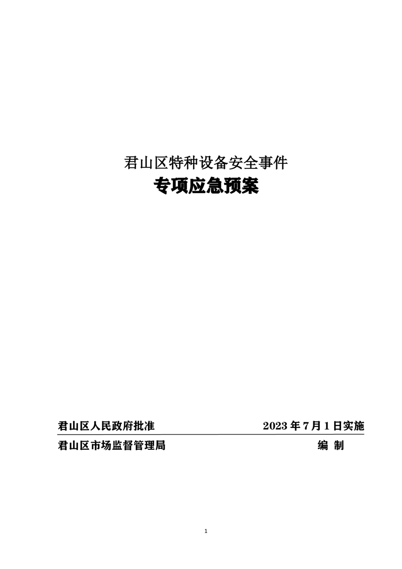 君山區(qū)特種設(shè)備安全事件專項應(yīng)急預(yù)案(君山區(qū)市場監(jiān)督管理局)