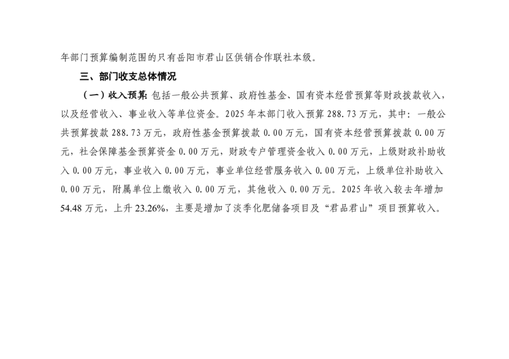 2025年岳陽市君山區(qū)供銷合作聯(lián)社部門預算公開