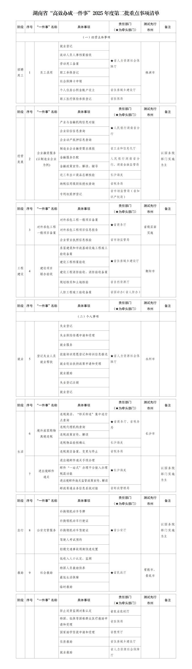 湖南省人民政府辦公廳關于印發(fā)《湖南省“高效辦成一件事”2025年度第二批重點事項清單》的通知