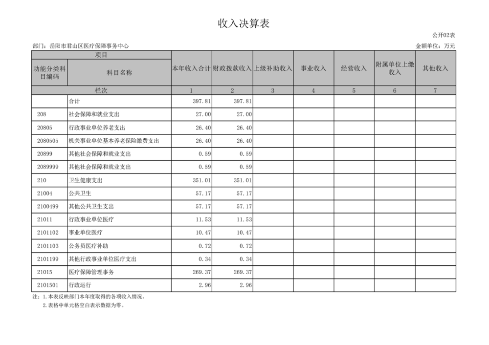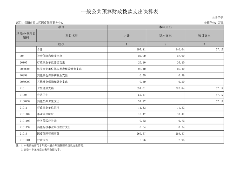2024年度岳陽市君山區(qū)醫(yī)療保障事務中心部門決算公開