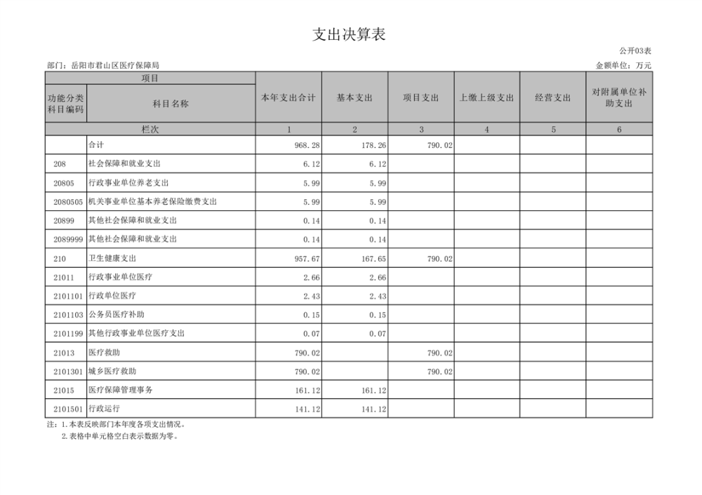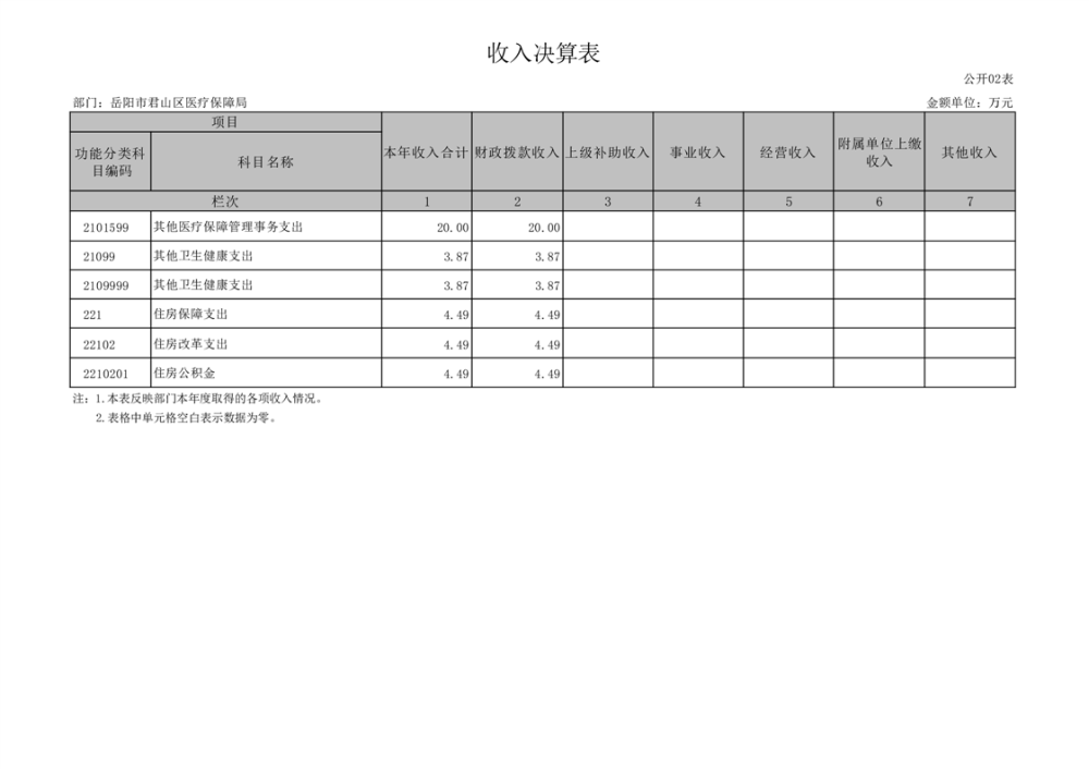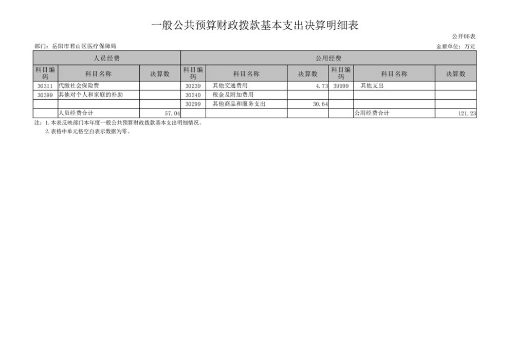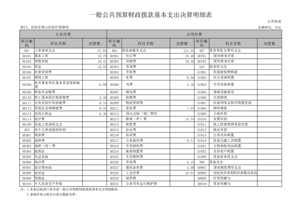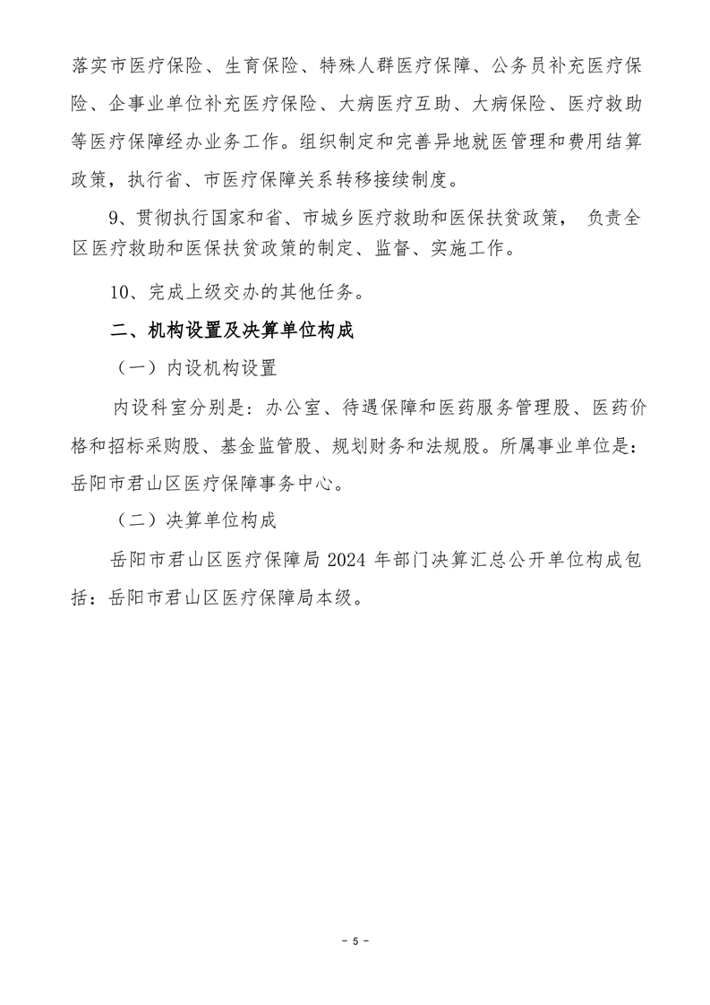 2024年度岳陽市君山區(qū)醫(yī)療保障局(本級) 部門決算公開