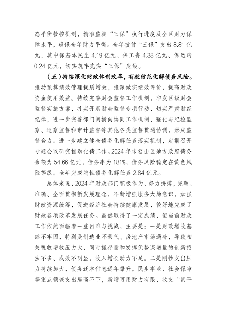 關(guān)于君山區(qū)2024年區(qū)級(jí)決算草案和2025年上半年預(yù)算執(zhí)行情況的報(bào)告