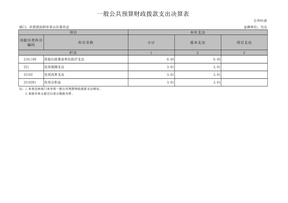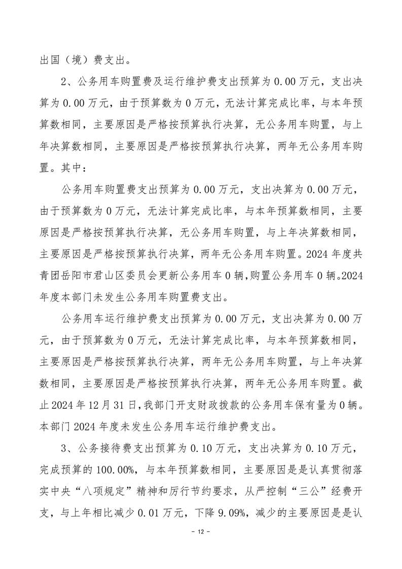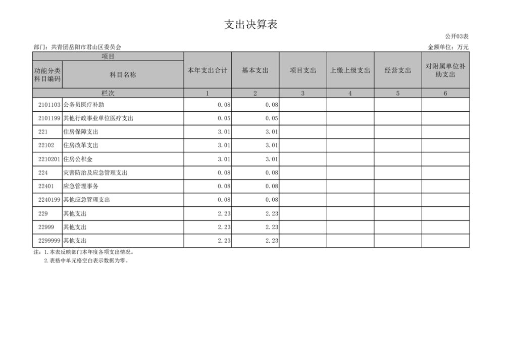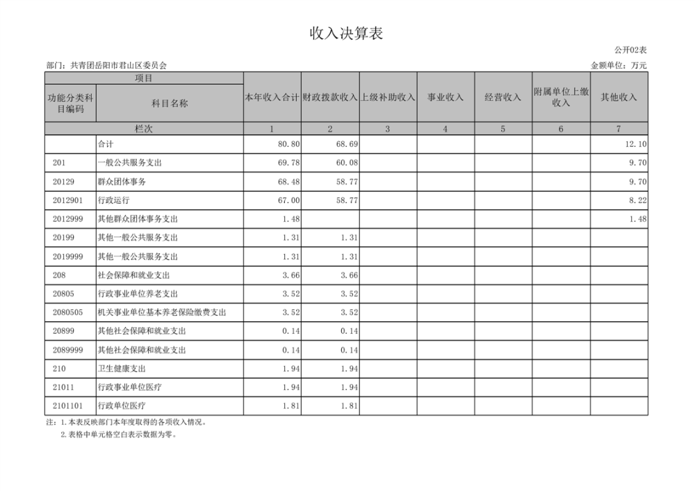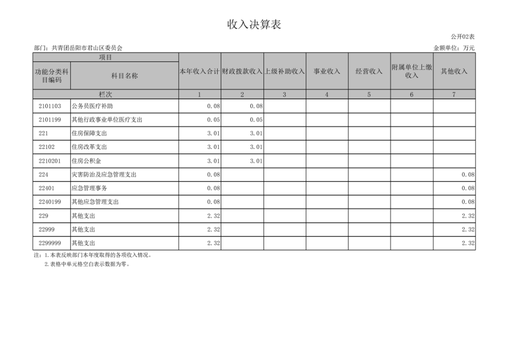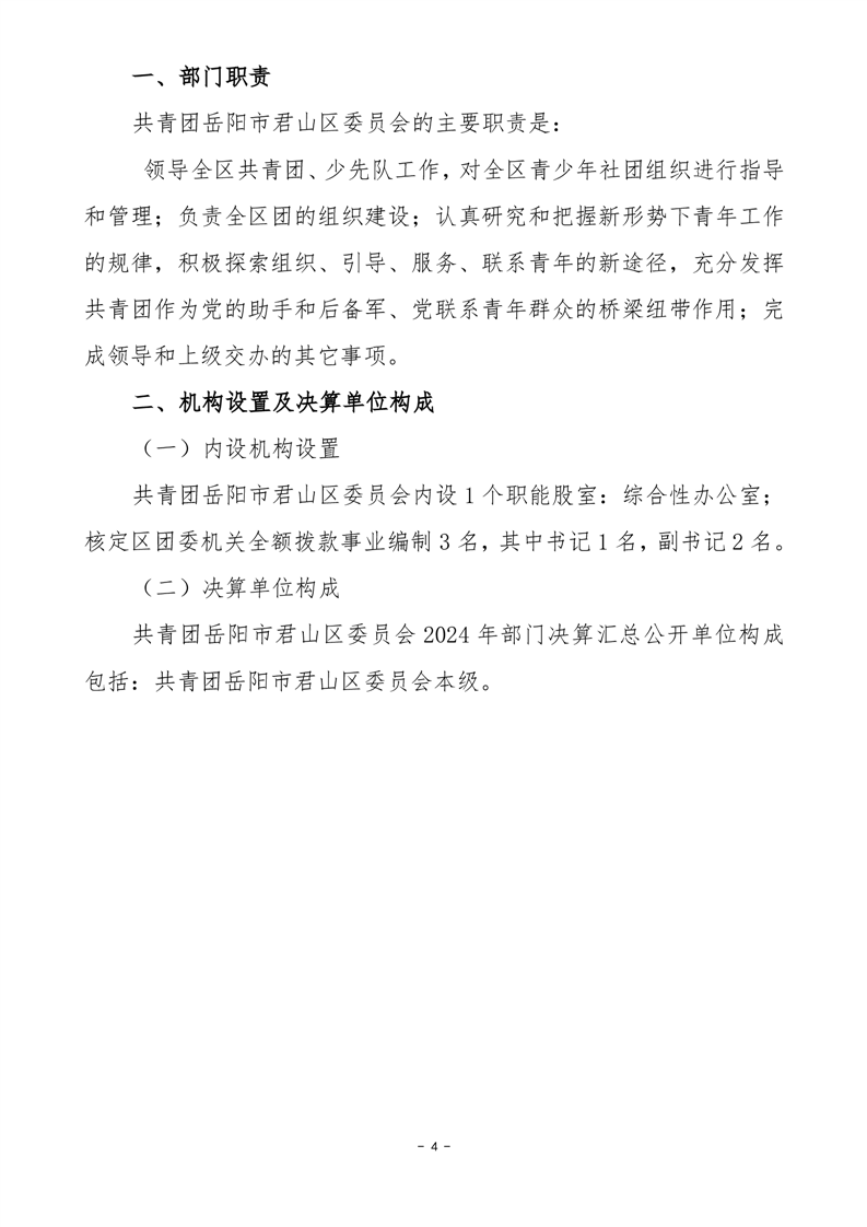 2024年度共青團(tuán)岳陽市君山區(qū)委員會(huì)部門決算公開