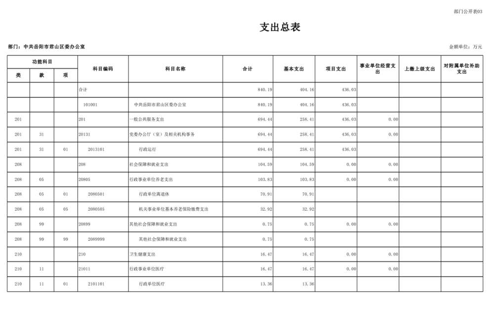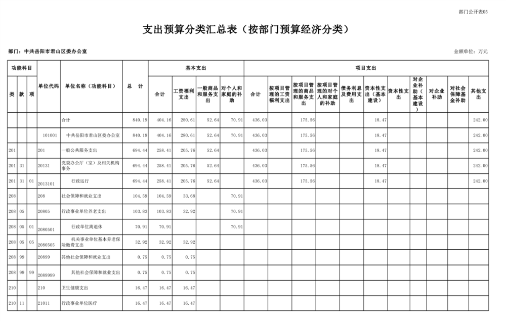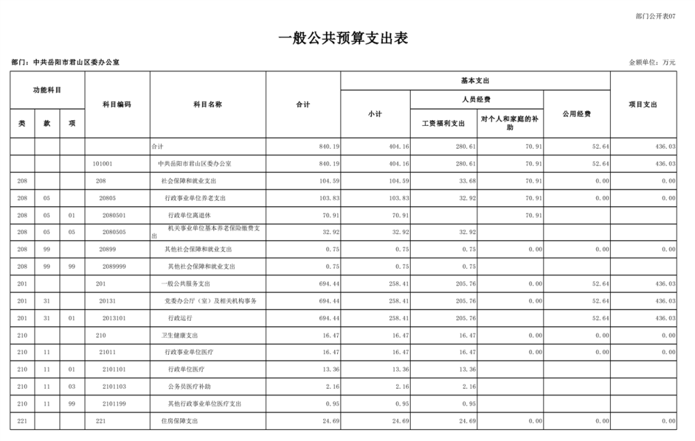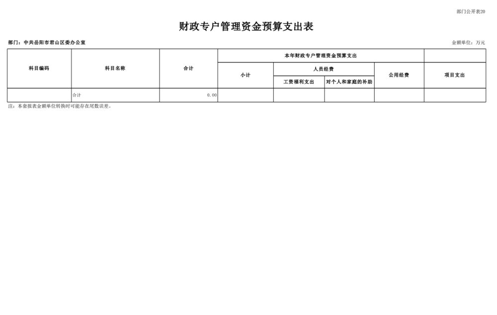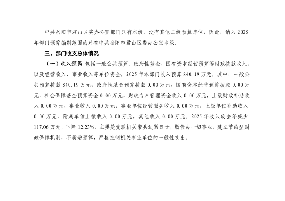 2025年中共岳陽市君山區(qū)委辦公室(本級)部門預算公開