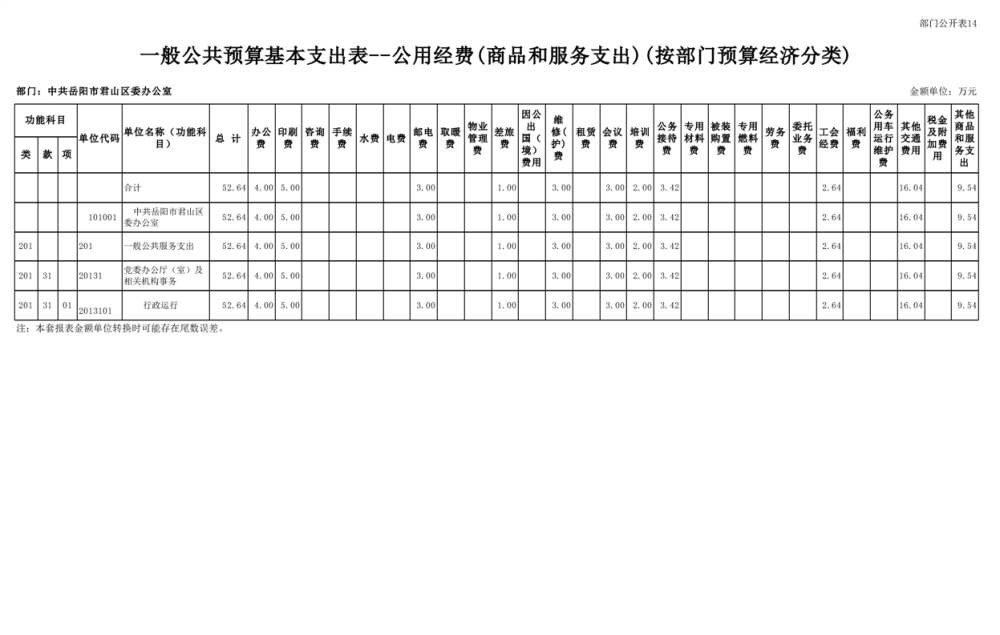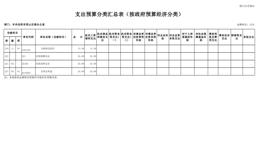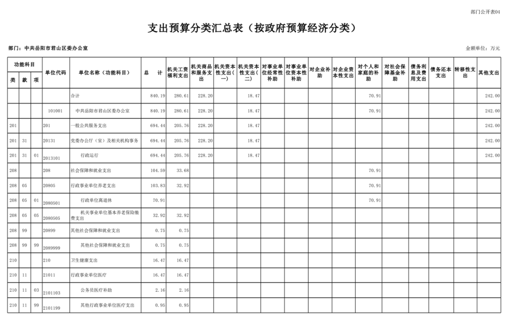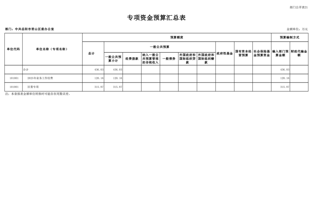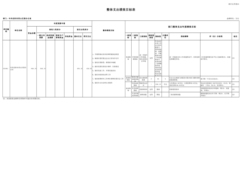 2025年中共岳陽市君山區(qū)委辦公室(本級)部門預算公開