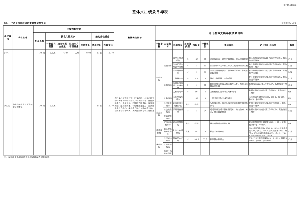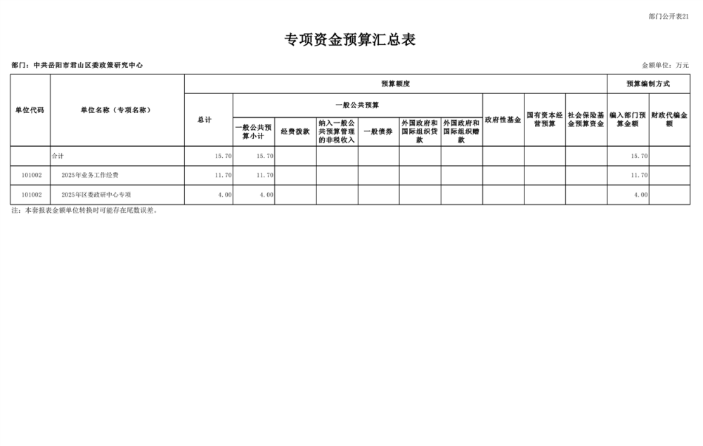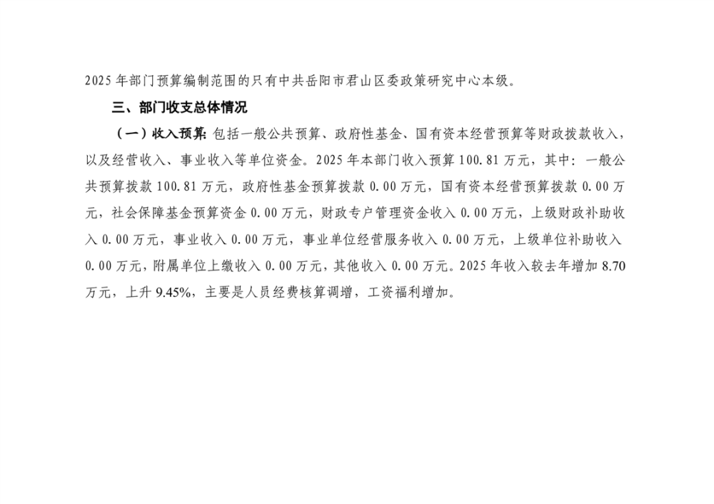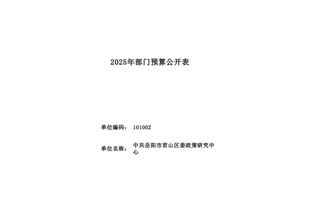 2025年中共岳陽市君山區(qū)委政策研究中心部門預(yù)算公開