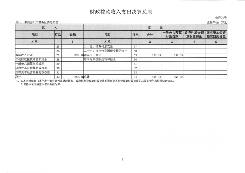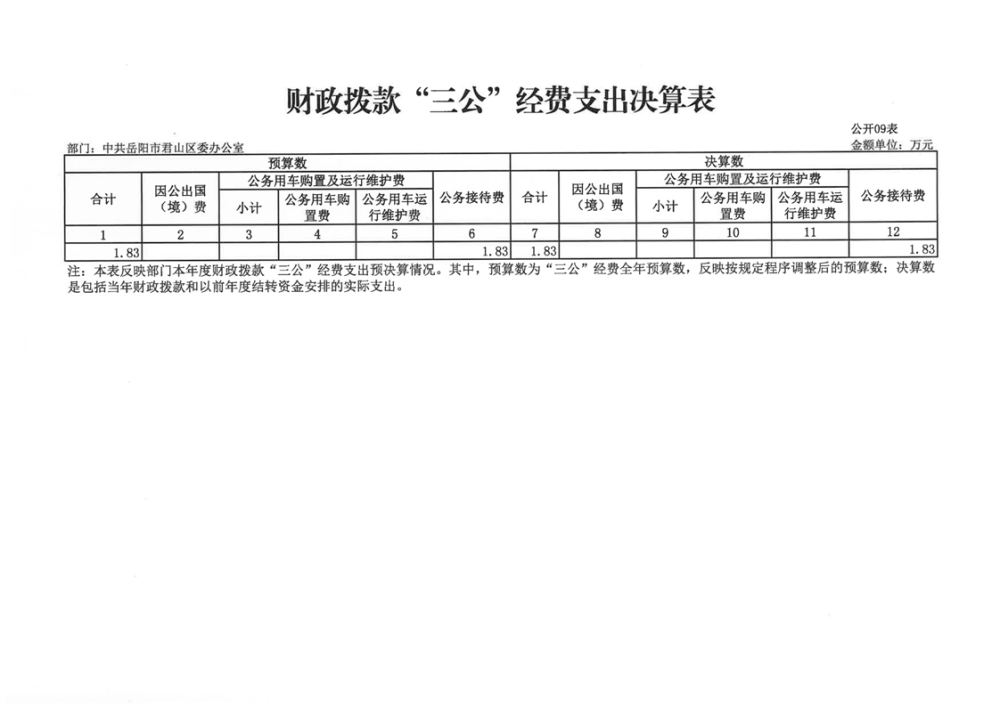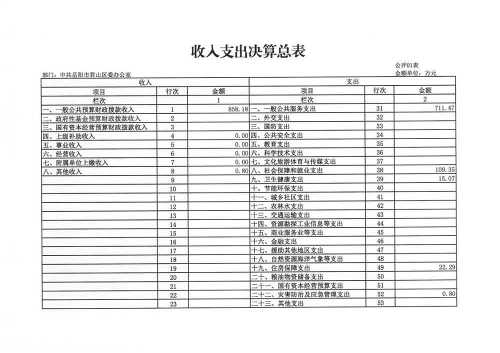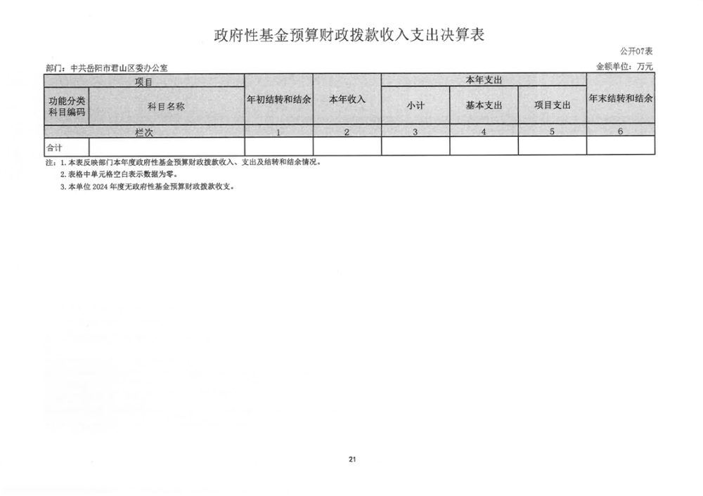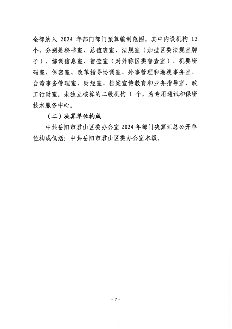 2024年度中共岳陽(yáng)市君山區(qū)委辦公室(本級(jí))部門(mén)決算公開(kāi)
