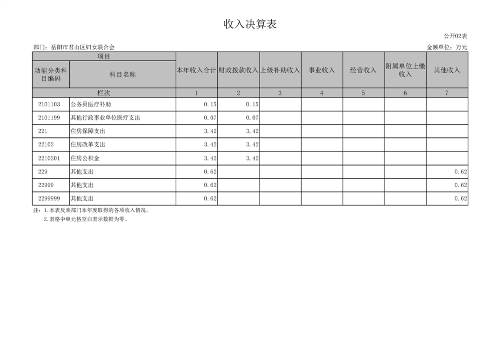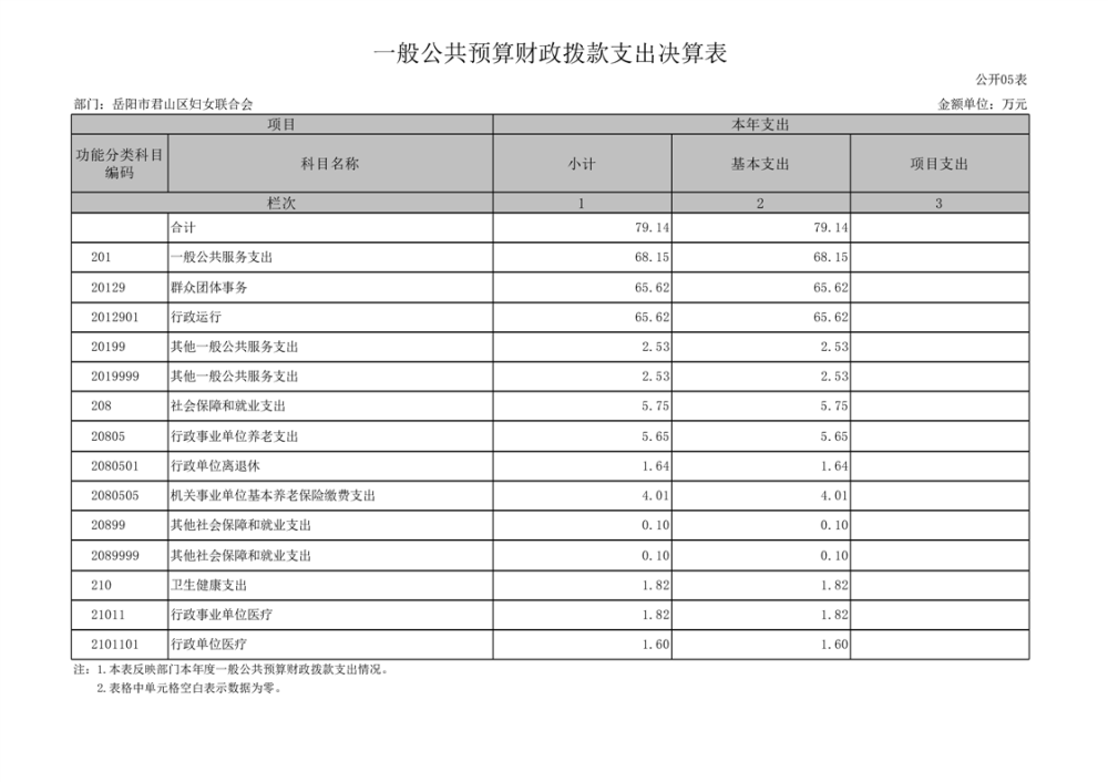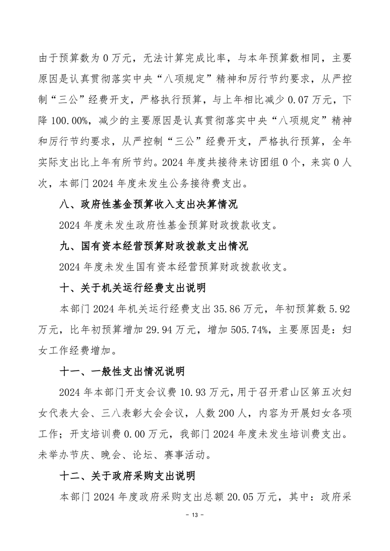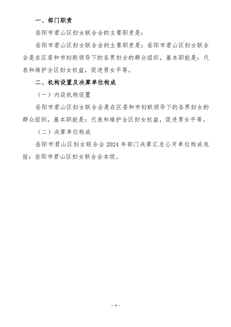 2024年度岳陽市君山區(qū)婦女聯(lián)合會部門決算公開