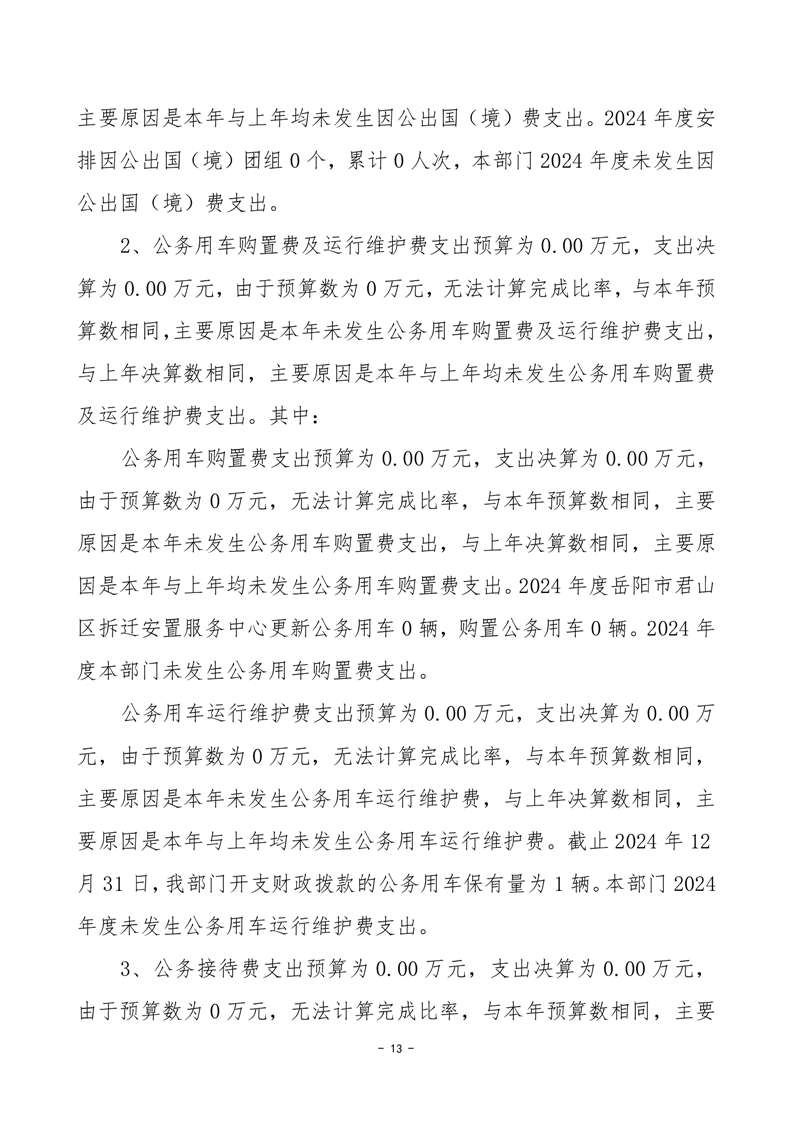 2024年度岳陽市君山區(qū)拆遷安置服務(wù)中心部門決算公開