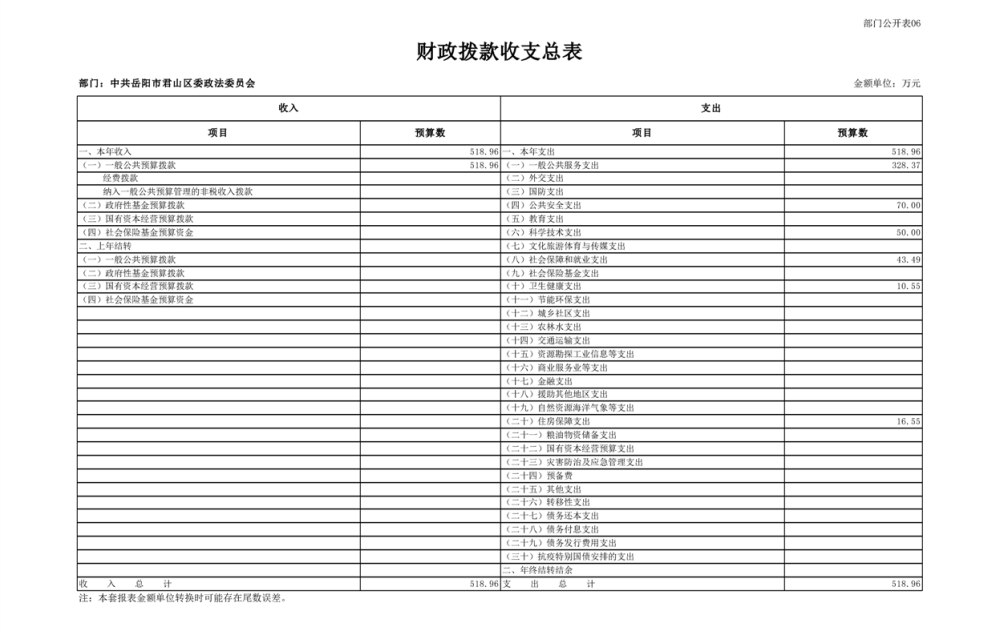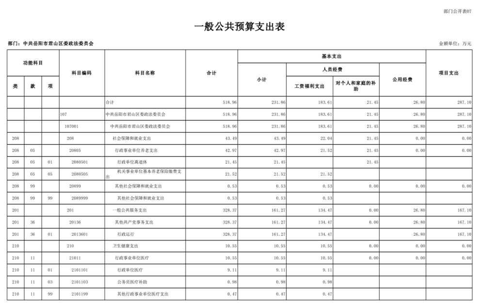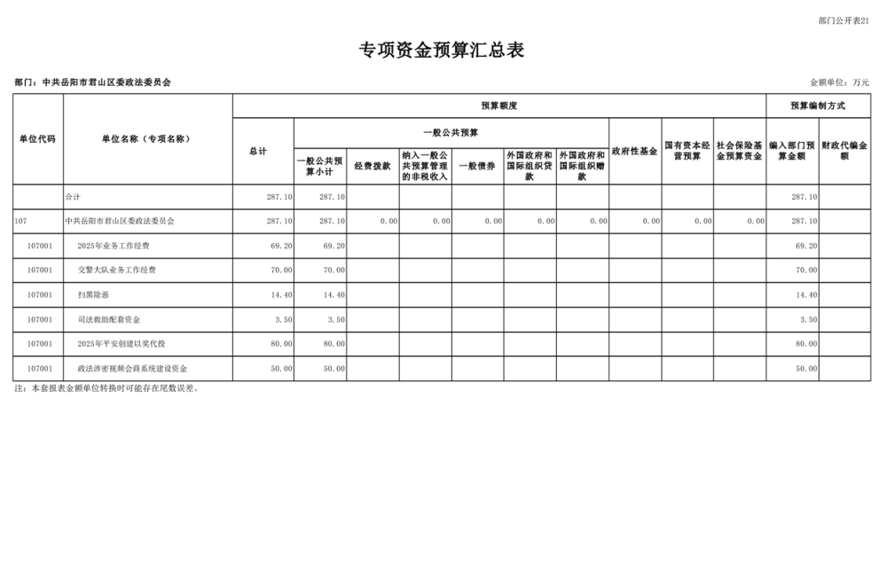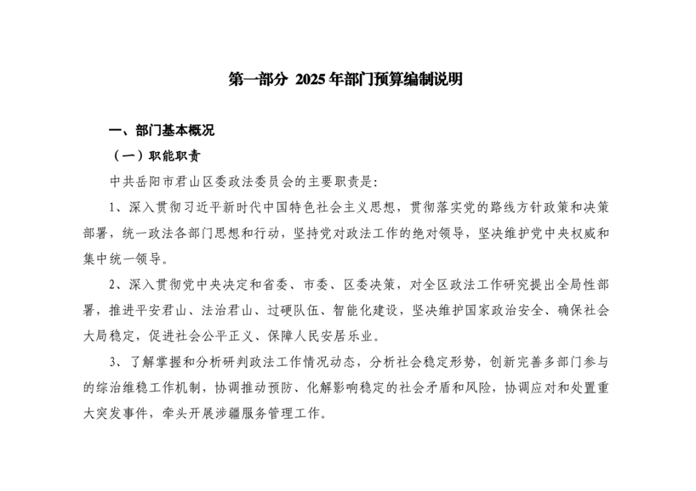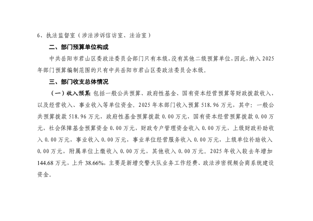 2025年中共岳陽市君山區(qū)委政法委員會部門預(yù)算公開