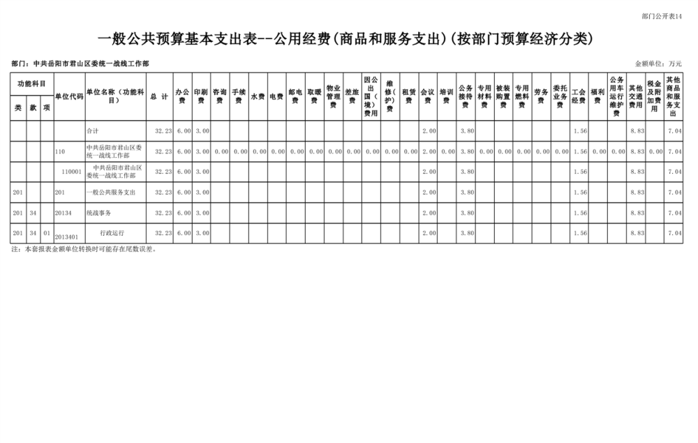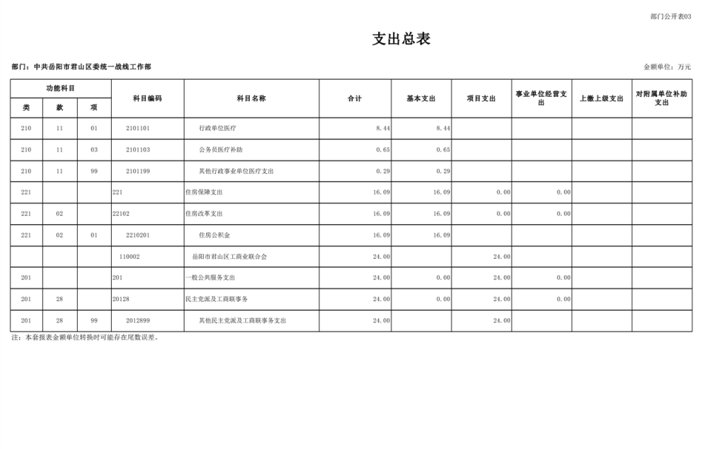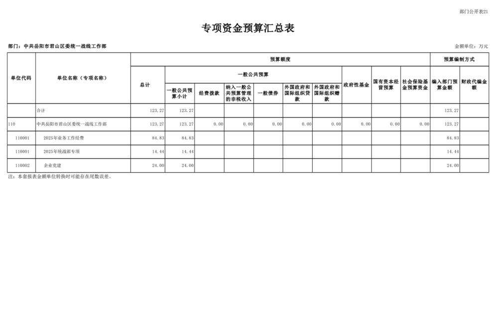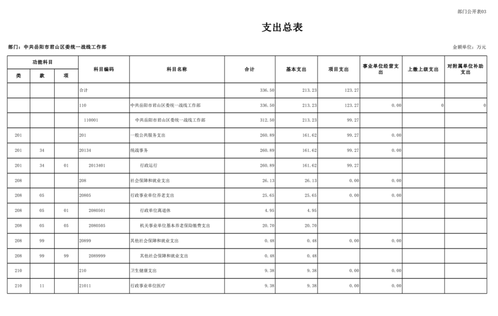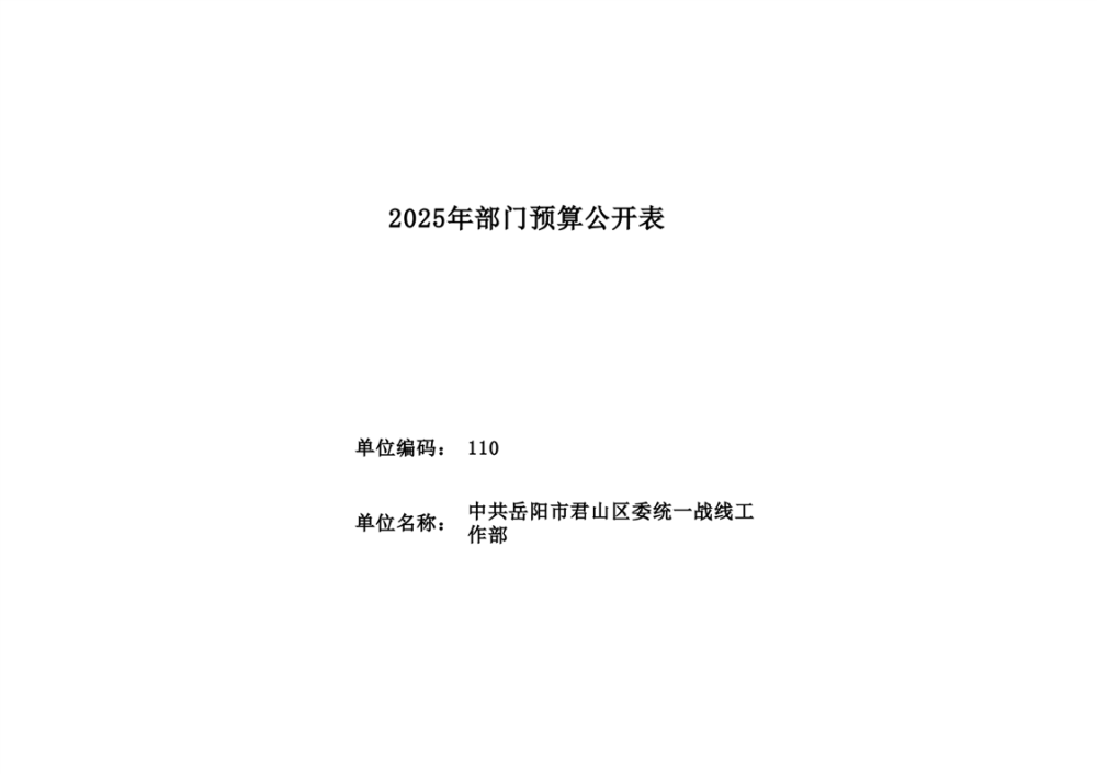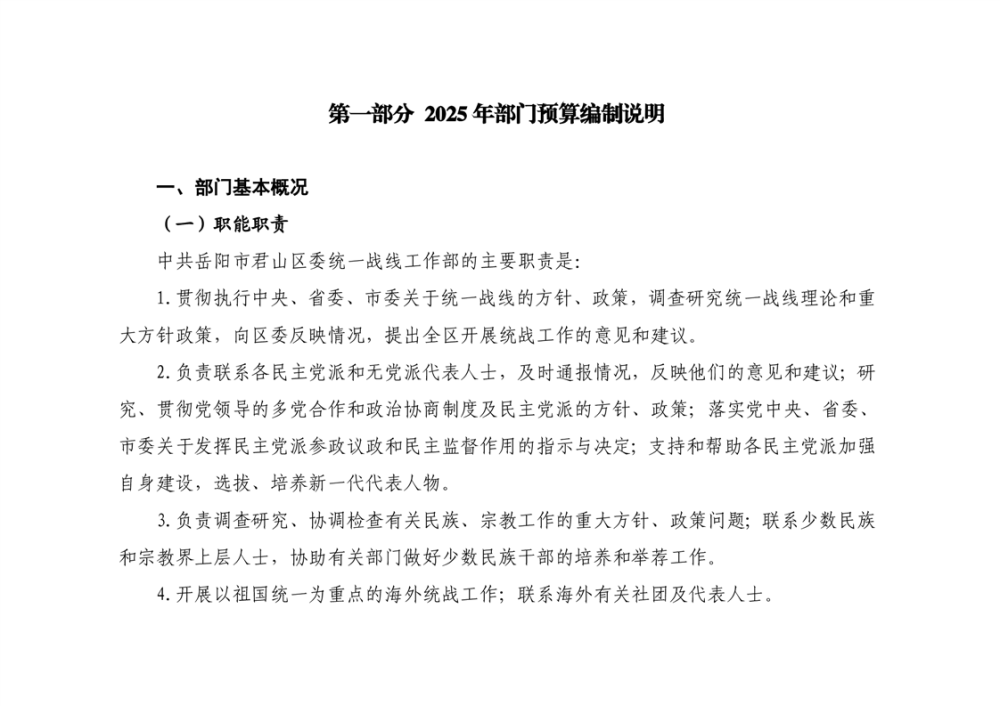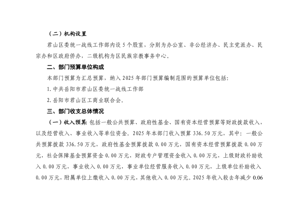 2025年中共岳陽(yáng)市君山區(qū)委統(tǒng)一戰(zhàn)線工作部(部門)預(yù)算公開