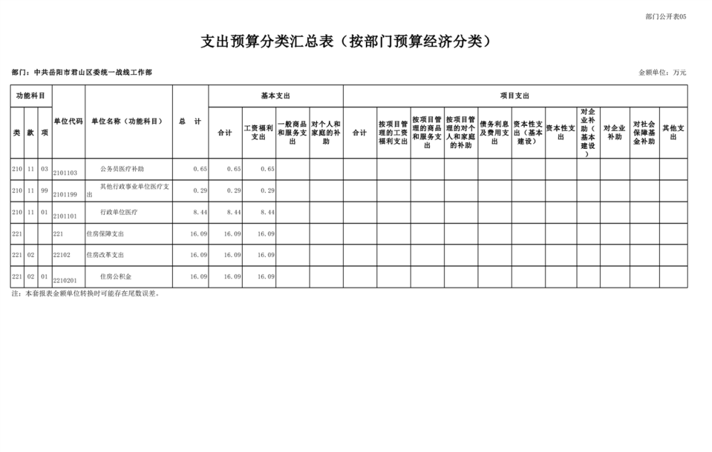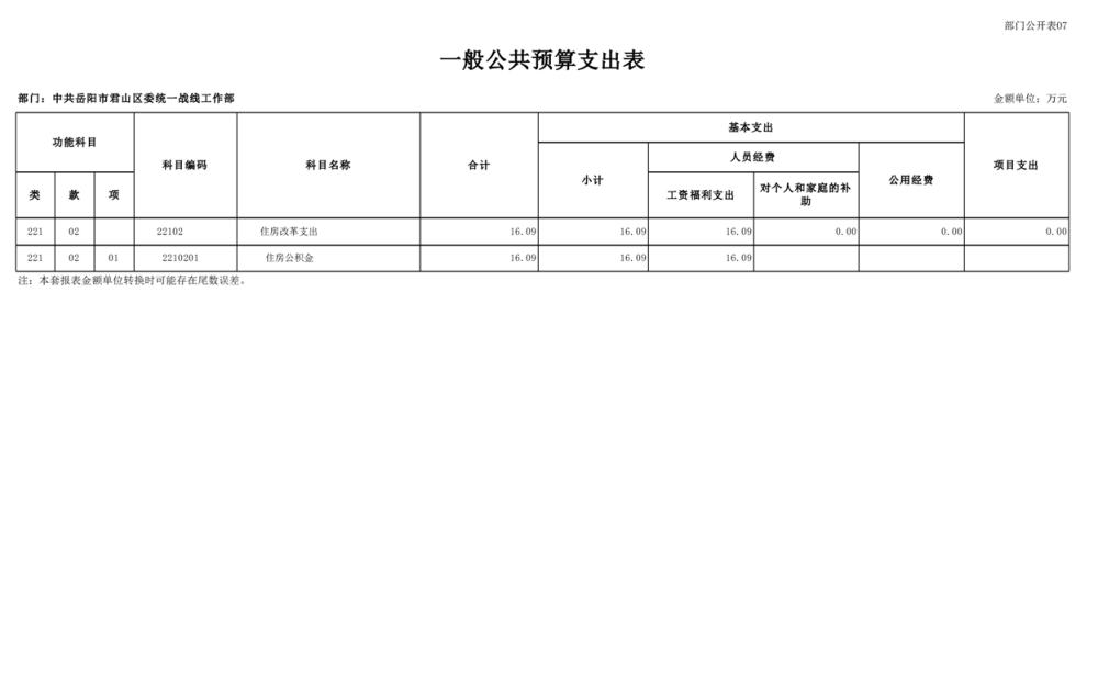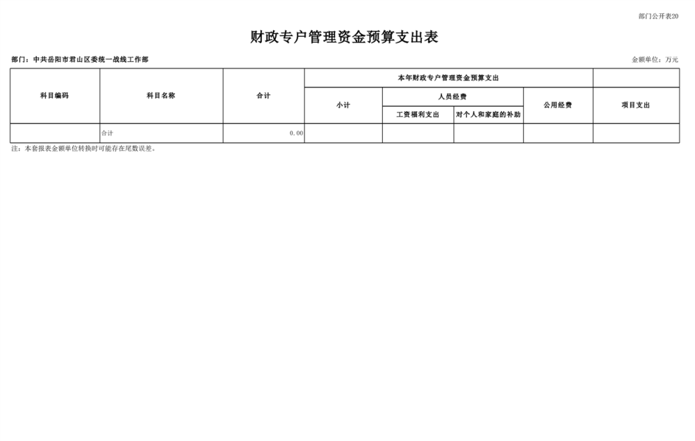 2025年中共岳陽(yáng)市君山區(qū)委統(tǒng)一戰(zhàn)線(xiàn)工作部(本級(jí))部門(mén)預(yù)算公開(kāi)