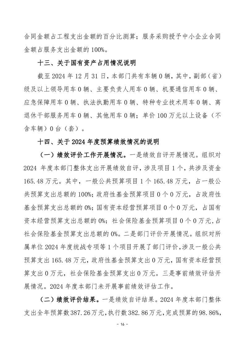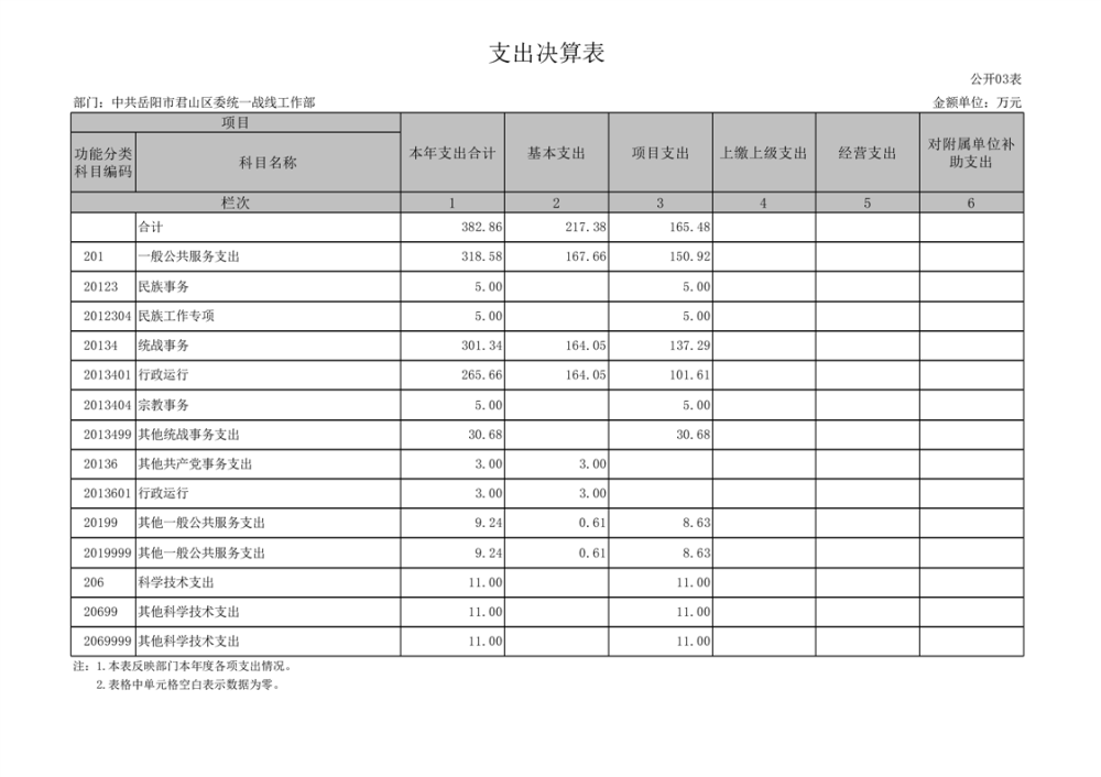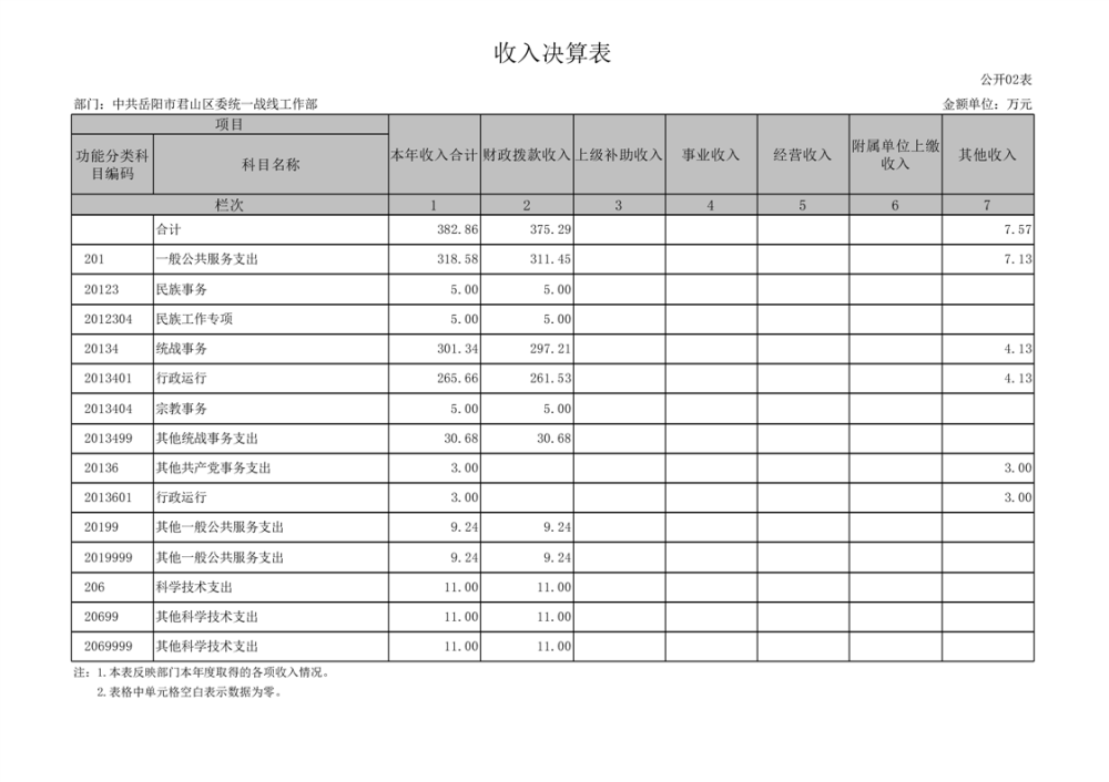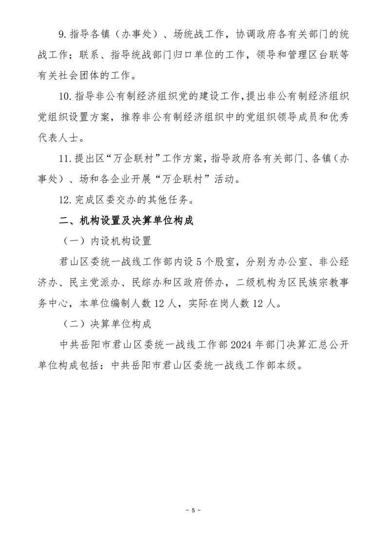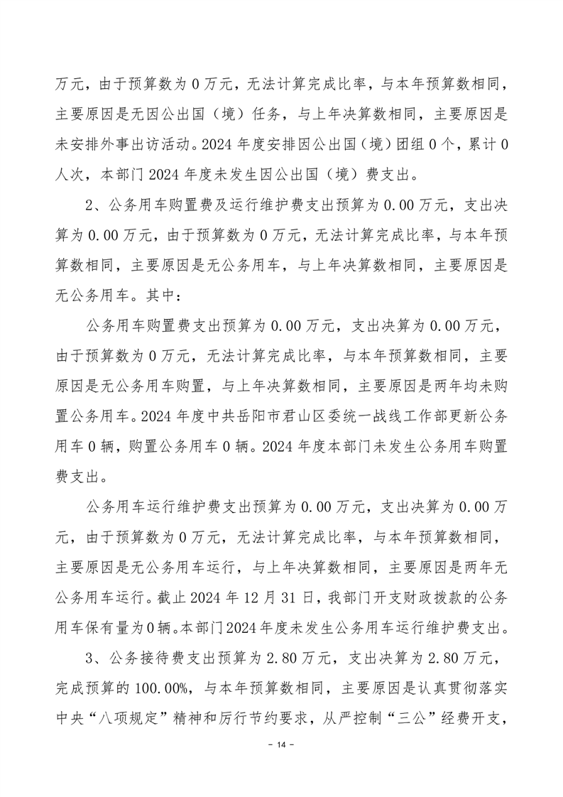 2024年度中共岳陽市君山區(qū)委統(tǒng)一戰(zhàn)線工作部部門決算公開