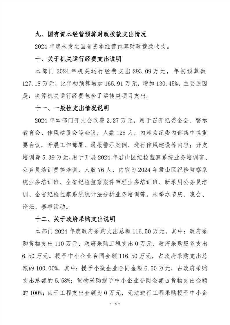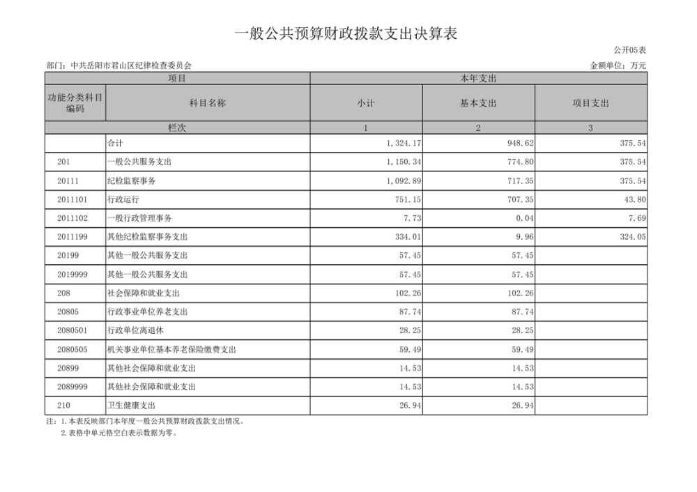 2024年度中共岳陽(yáng)市君山區(qū)紀(jì)律檢查委員會(huì)部門決算公開(kāi)
