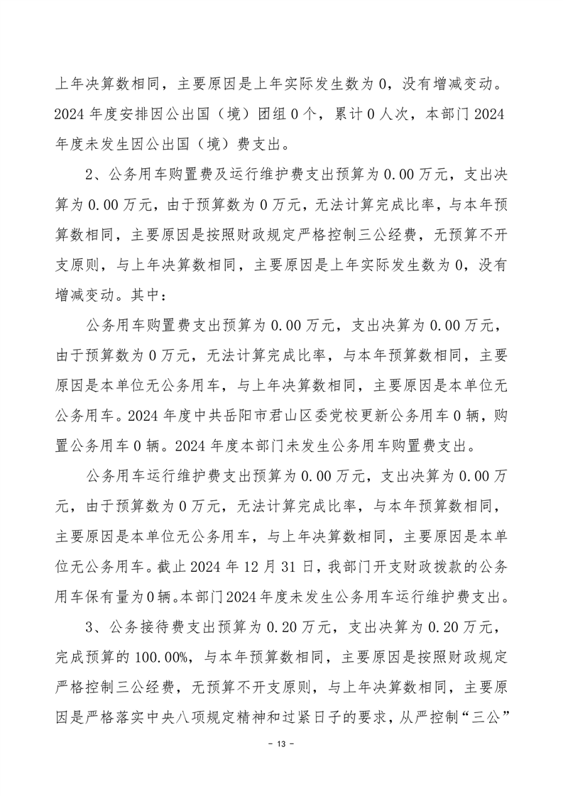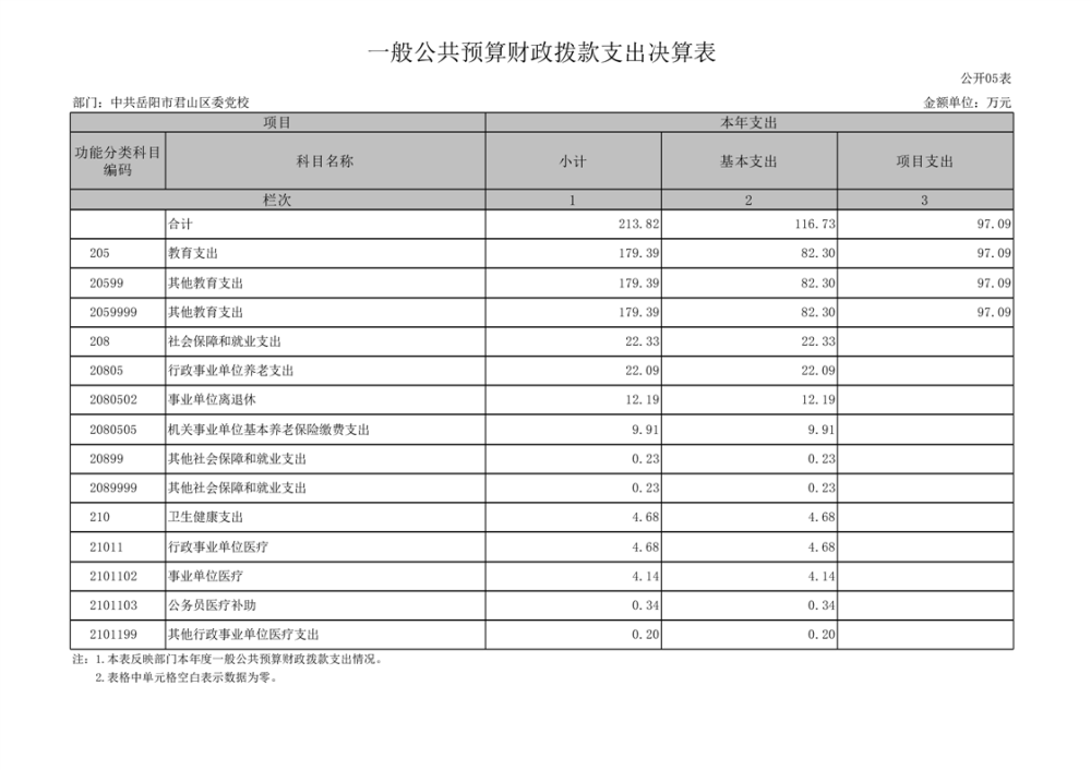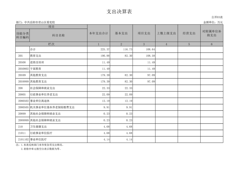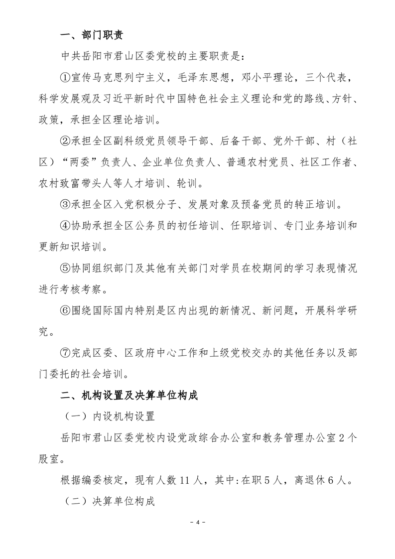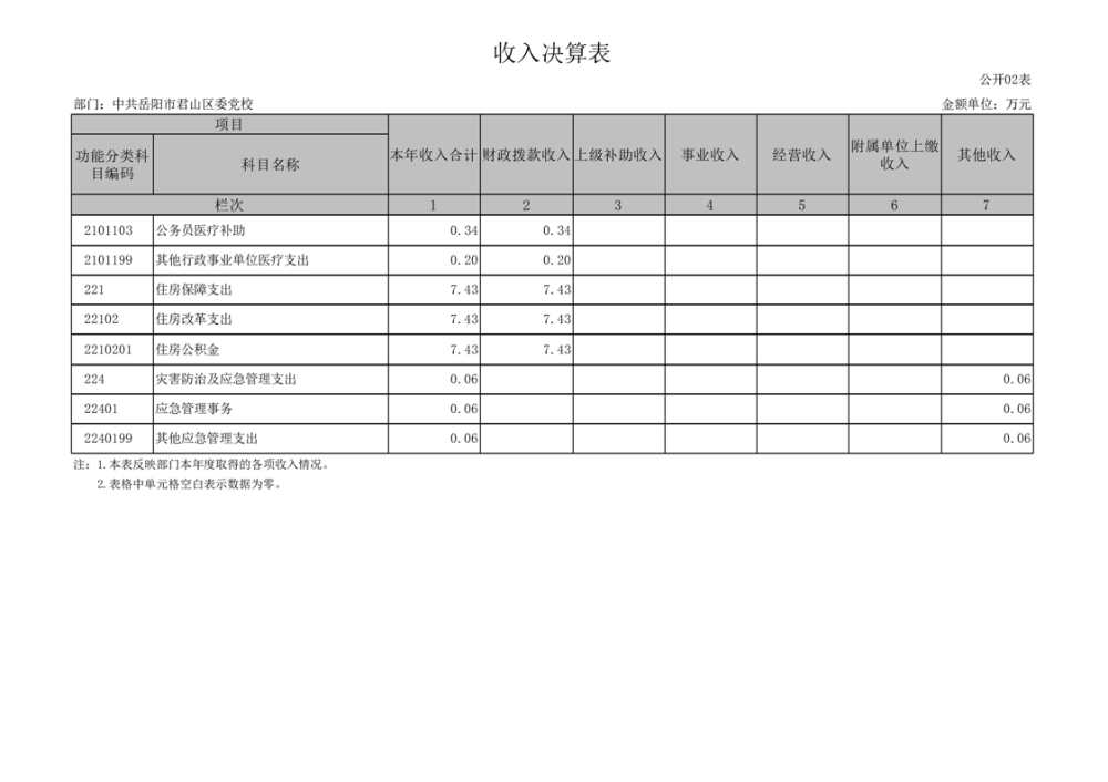 2024年度中共岳陽市君山區(qū)委黨校部門決算公開