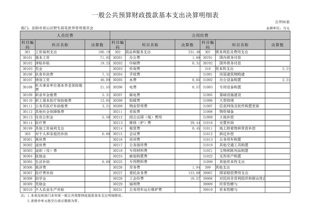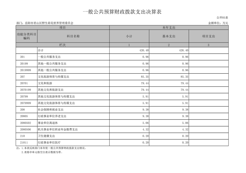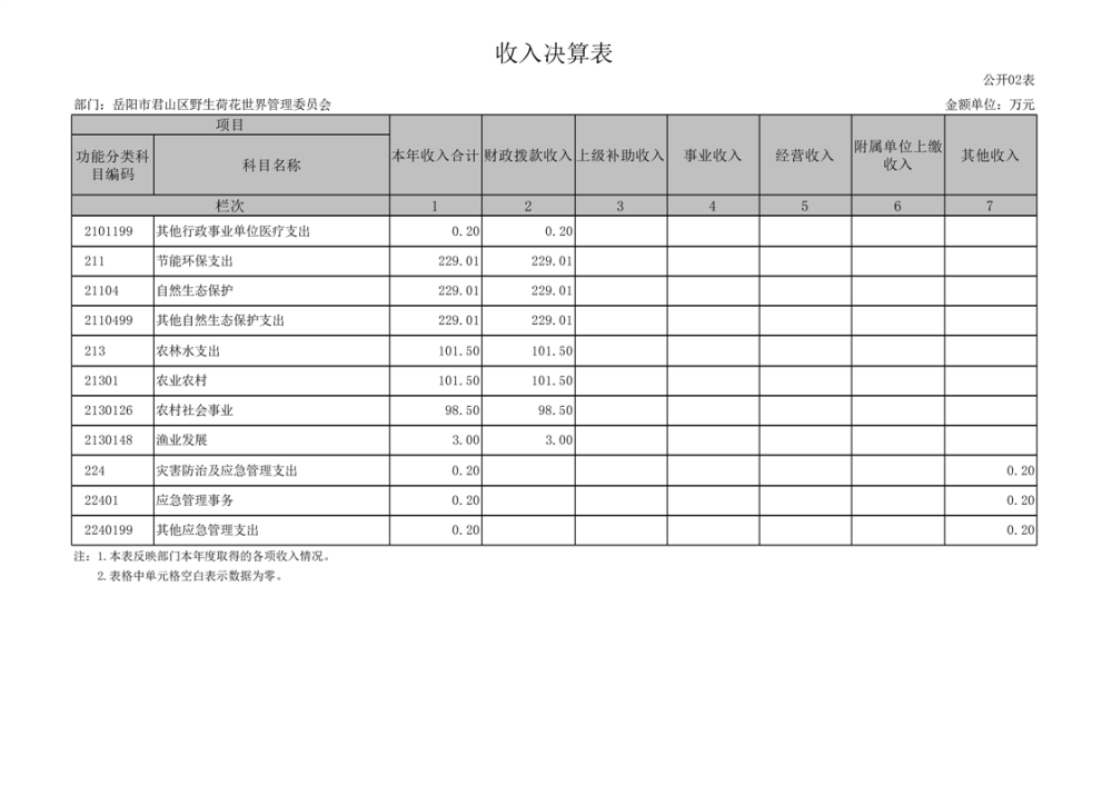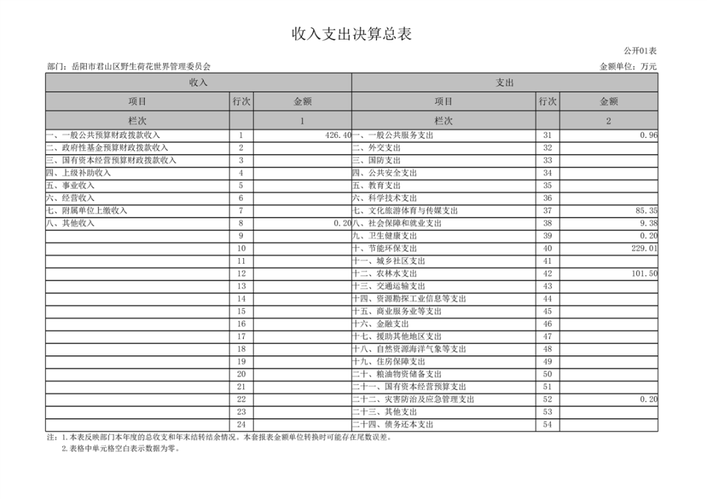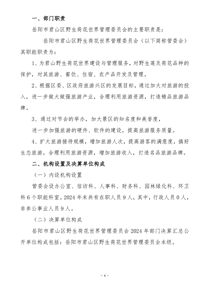 2024年度岳陽市君山區(qū)野生荷花世界管理委員會部門決算公開