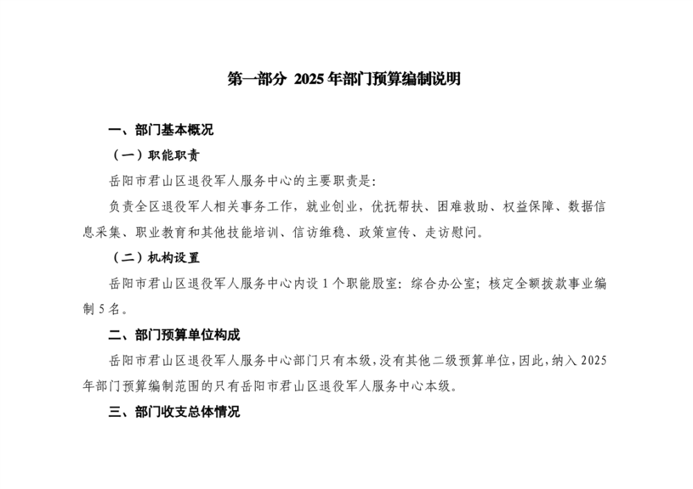 2025年岳陽市君山區(qū)退役軍人服務(wù)中心部門預(yù)算公開