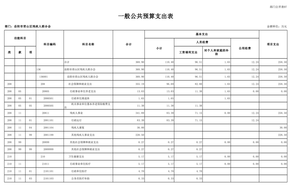 2025年岳陽市君山區(qū)殘疾人聯(lián)合會部門預(yù)算公開