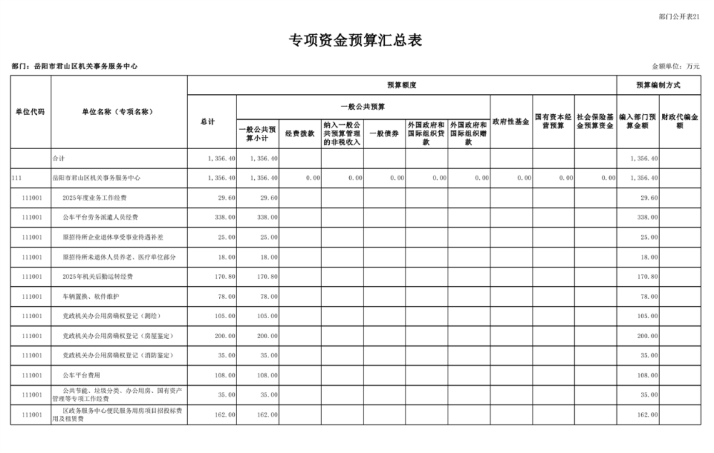 2025年岳陽市君山區(qū)機關事務服務中心部門預算公開