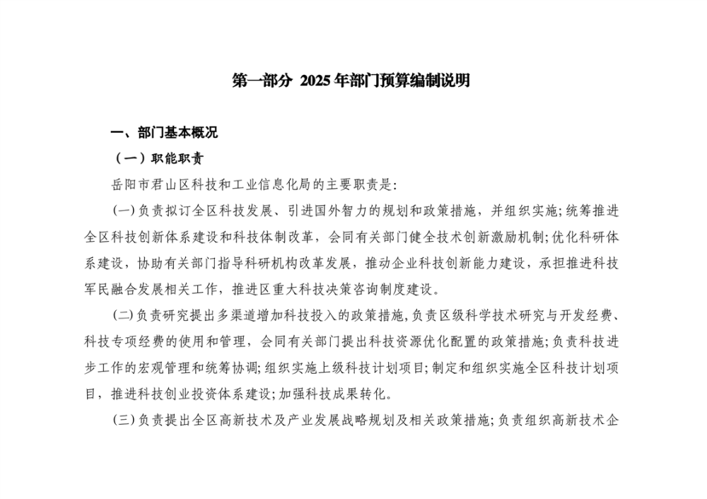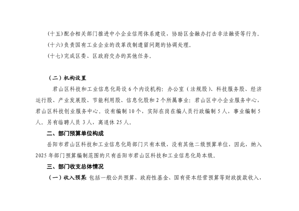 2025年岳陽(yáng)市君山區(qū)科技和工業(yè)信息化局部門(mén)預(yù)算公開(kāi)