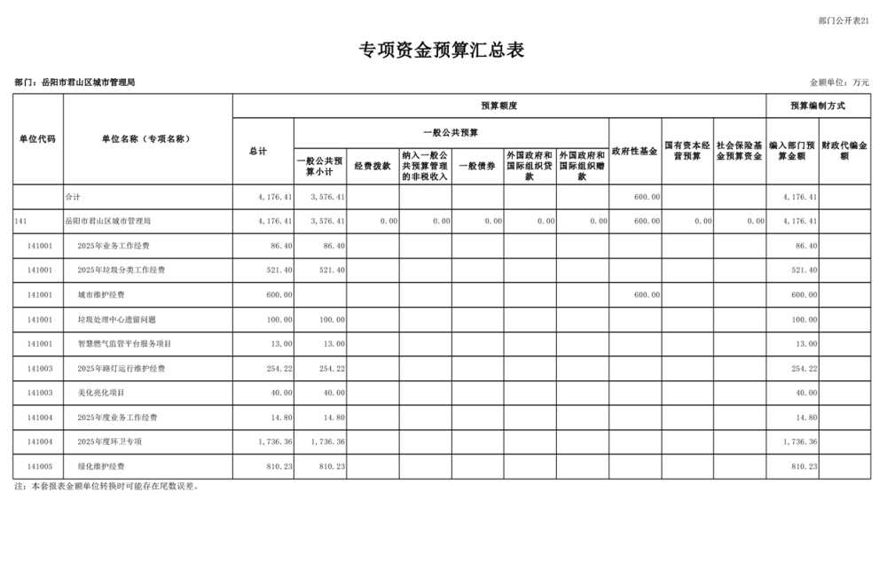 2025年岳陽(yáng)市君山區(qū)城市管理局(部門(mén))預(yù)算公開(kāi)