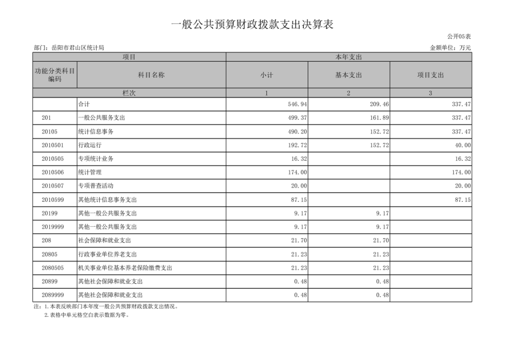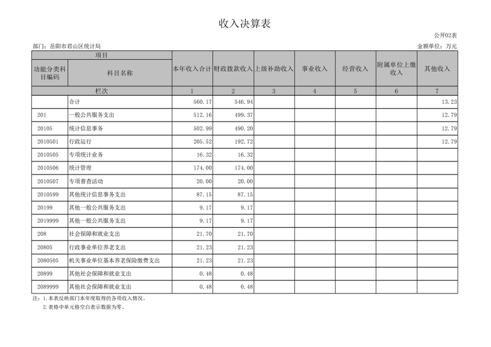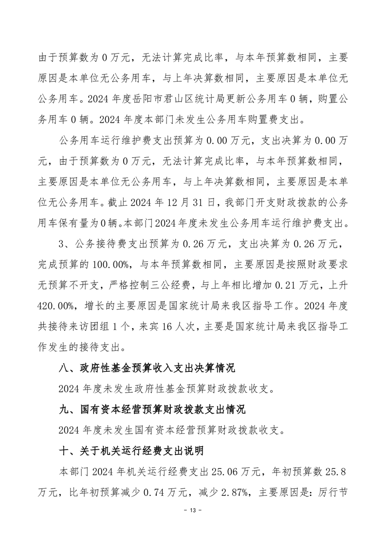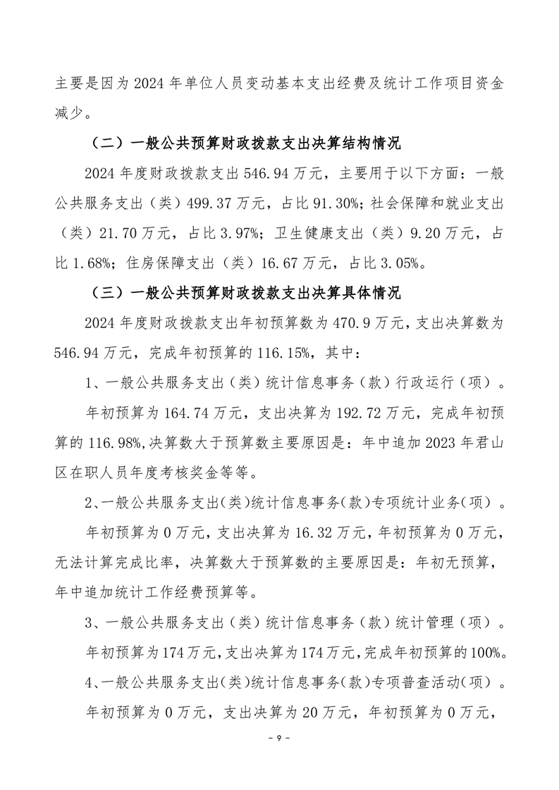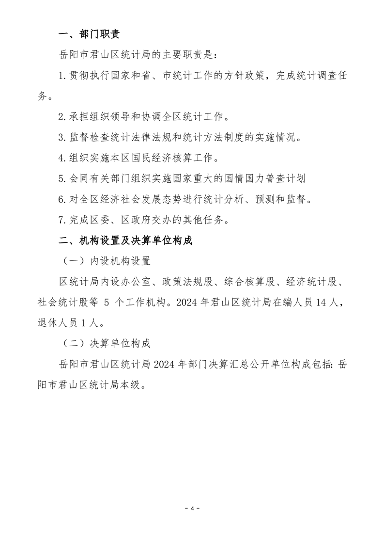 2024年度岳陽市君山區(qū)統(tǒng)計(jì)局部門決算公開