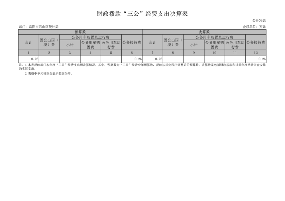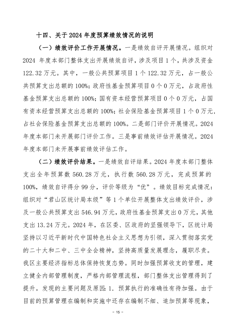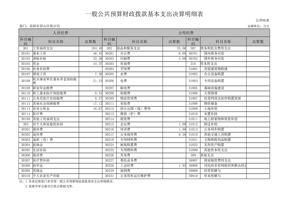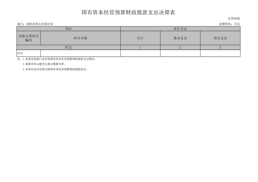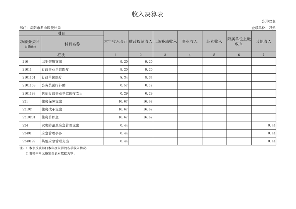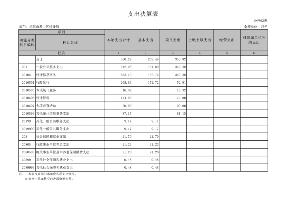 2024年度岳陽市君山區(qū)統(tǒng)計(jì)局部門決算公開