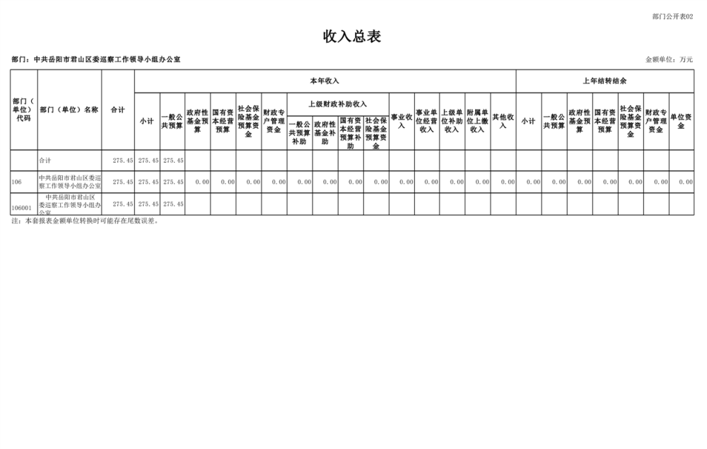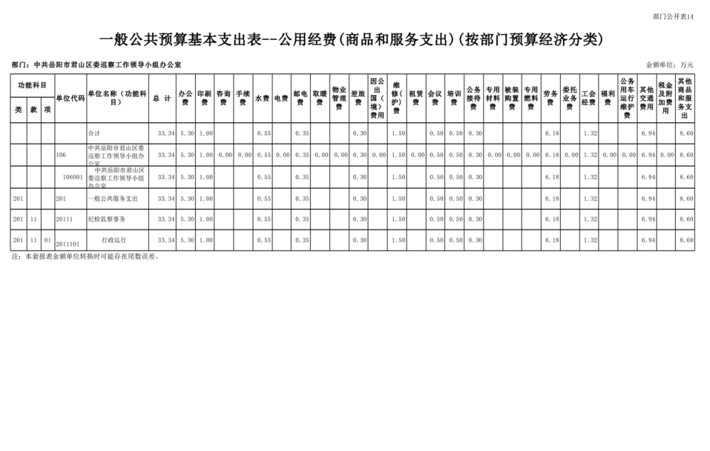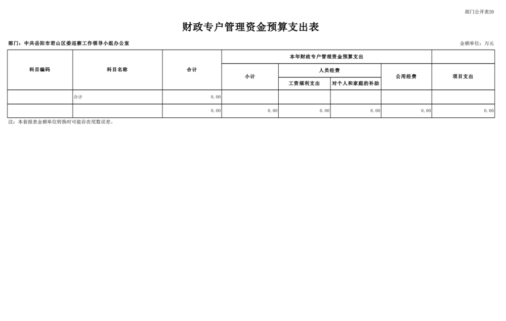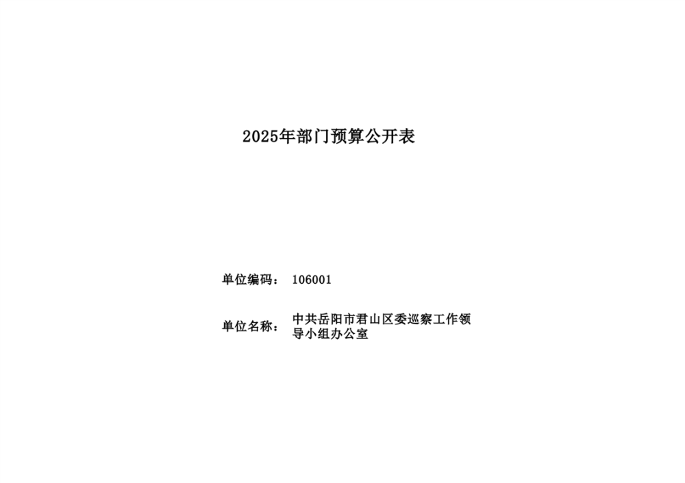 2025年中共岳陽市君山區(qū)委巡察工作領(lǐng)導(dǎo)小組辦公室部門預(yù)算公開