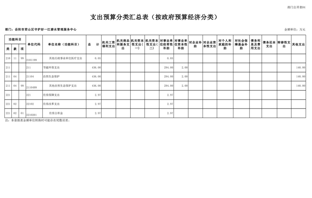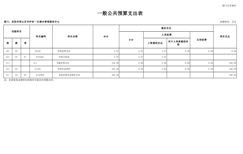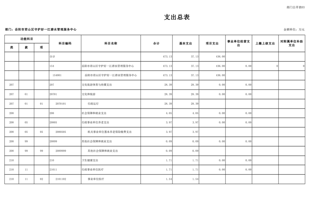 2025年岳陽(yáng)市君山區(qū)守護(hù)好一江碧水管理服務(wù)中心部門預(yù)算公開(kāi)