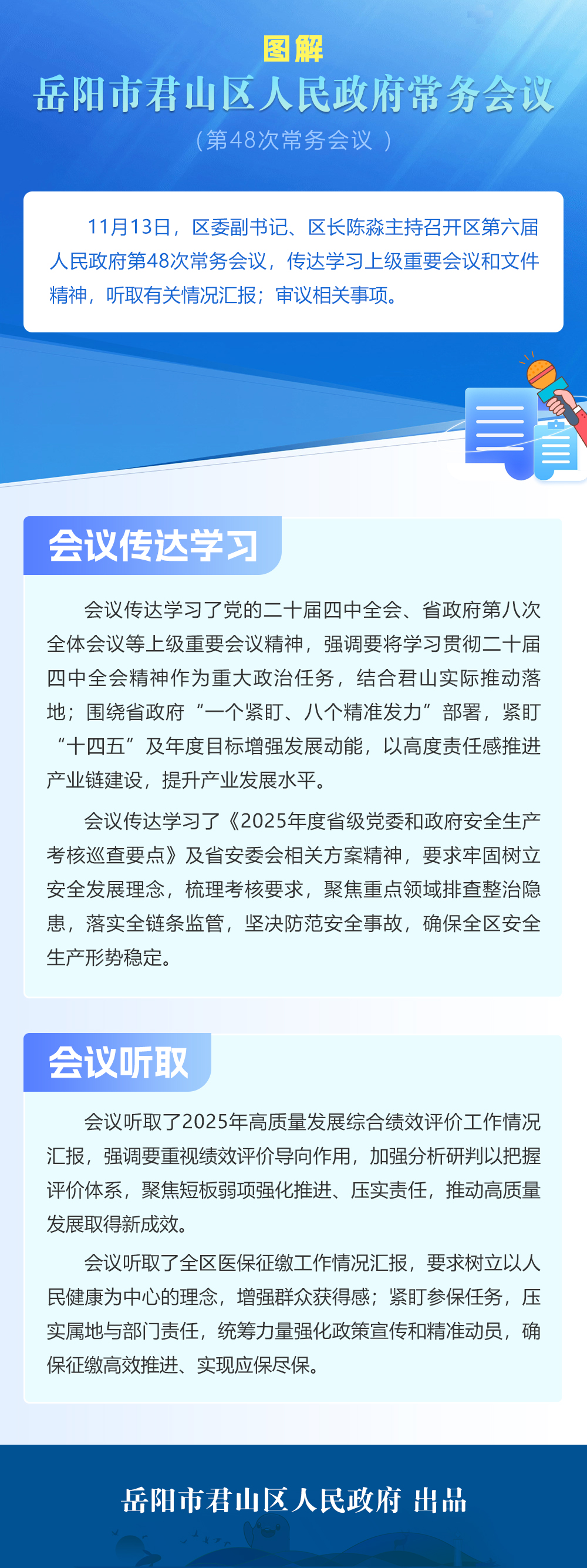 11月13日,區(qū)委副書記、區(qū)長陳淼主持召開區(qū)第六屆人民政府第48次常務會議,傳達學習上級重要會議和文件精神,聽取有關情況匯報;審議相關事項。