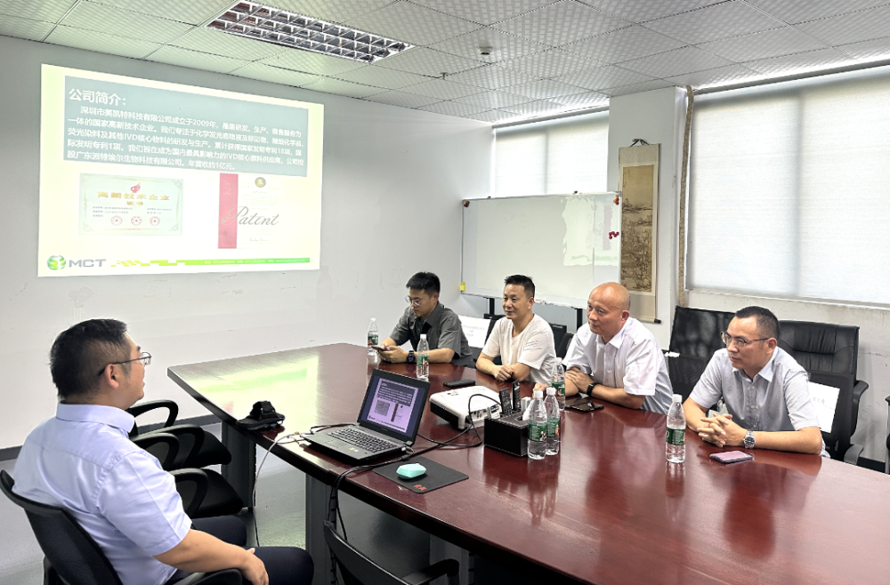 隨后,考察團來到深圳市美凱特科技有限公司。該公司成立于2009年10月,經(jīng)過15年的發(fā)展,已經(jīng)成為國內(nèi)領(lǐng)先的診斷試劑及其原料生產(chǎn)的領(lǐng)先企業(yè)(化學(xué)發(fā)光試劑等細分領(lǐng)域單項冠軍)。在公司負責(zé)人的陪同下,考察團參觀了研發(fā)中心和生產(chǎn)基地,深入了解了公司在技術(shù)創(chuàng)新、產(chǎn)品質(zhì)量控制等方面的經(jīng)驗和做法。雙方就未來合作方向進行了深入探討,期待能在更多領(lǐng)域?qū)崿F(xiàn)共贏。