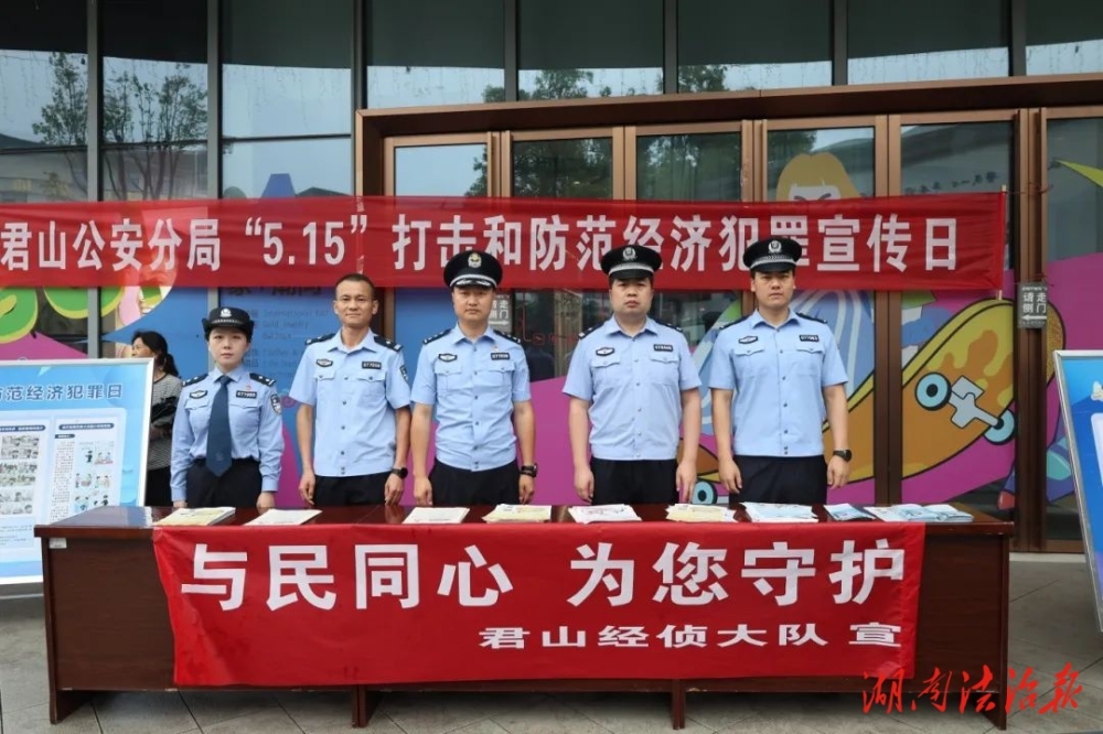 湖南法治報(bào)訊(通訊員 劉松)5月15日是第十六個(gè)全國公安機(jī)關(guān)打擊和防范經(jīng)濟(jì)犯罪宣傳日。君山區(qū)公安分局經(jīng)偵大隊(duì)以“與民同心,為您守護(hù)”為主題,在城區(qū)組織開展普法宣傳活動(dòng),著力提升群眾防范意識(shí),切實(shí)維護(hù)經(jīng)濟(jì)安全,守護(hù)好人民群眾“錢袋子”。