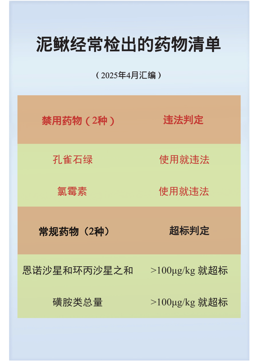 泥鰍經(jīng)常檢出的藥物清單
