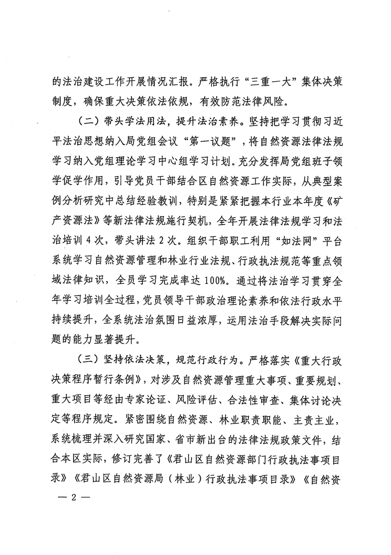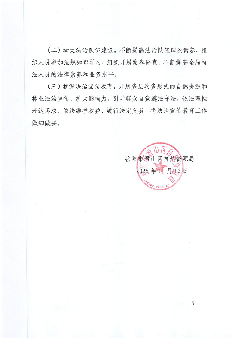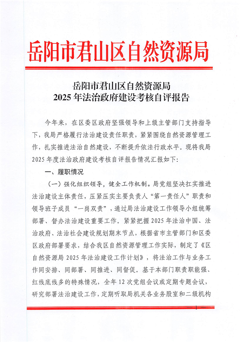 岳陽(yáng)市君山區(qū)自然資源局2025年法治政府建設(shè)考核自評(píng)報(bào)告