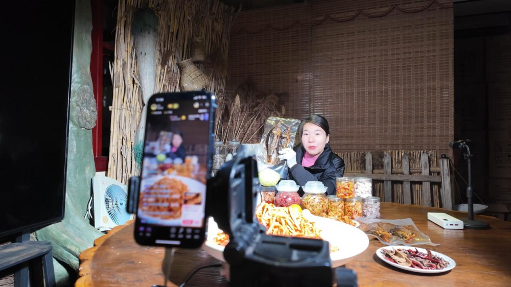 平臺(tái)構(gòu)建了集主播孵化、直播帶貨、電商助農(nóng)、旅游推介于一體的生態(tài)鏈。21名上岸漁民在此找到了新崗位,化身帶貨主播或運(yùn)營人員。平臺(tái)效應(yīng)輻射周邊,帶動(dòng)40多戶商家利用抖音等新媒體平臺(tái)推介自家產(chǎn)品,劉靜、胖姐等一批本地“網(wǎng)紅”脫穎而出,鏡頭前熱情洋溢的推介,讓訂單如雪片般從全國各地飛來。