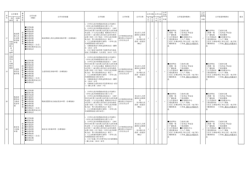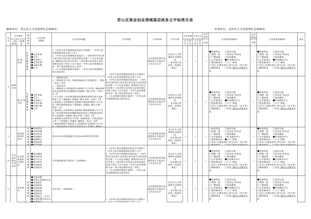 君山區(qū)就業(yè)創(chuàng)業(yè)領域基層政務公開標準目錄(2025年)