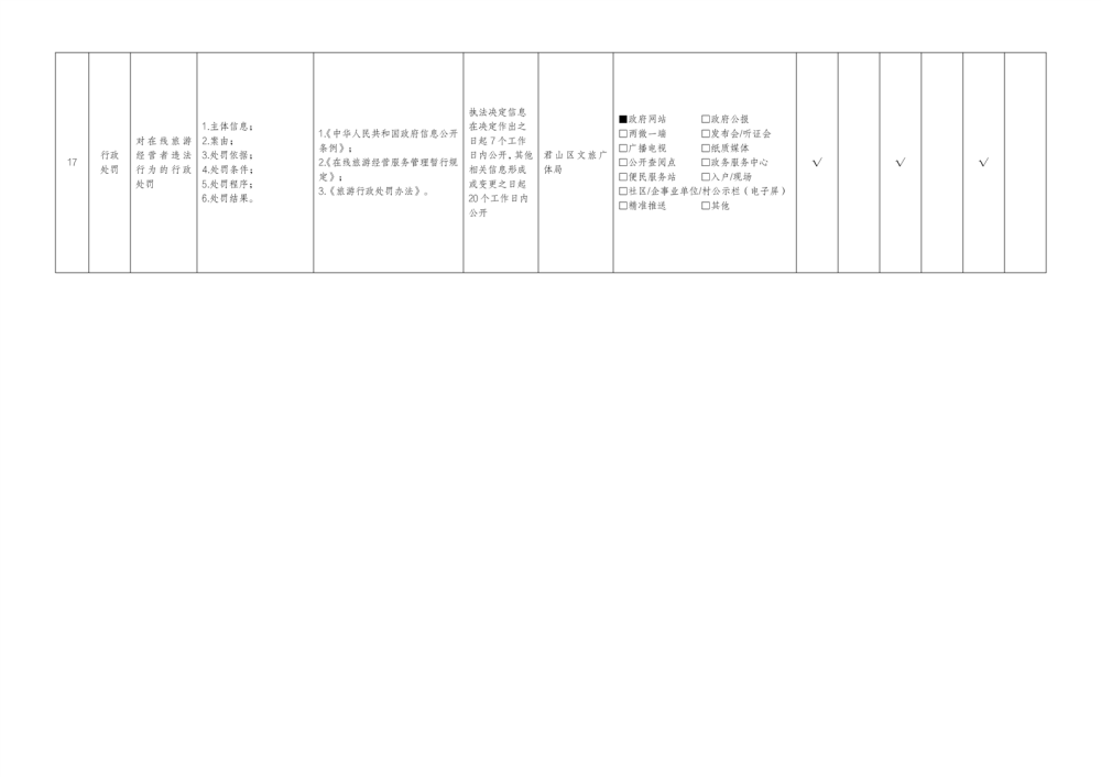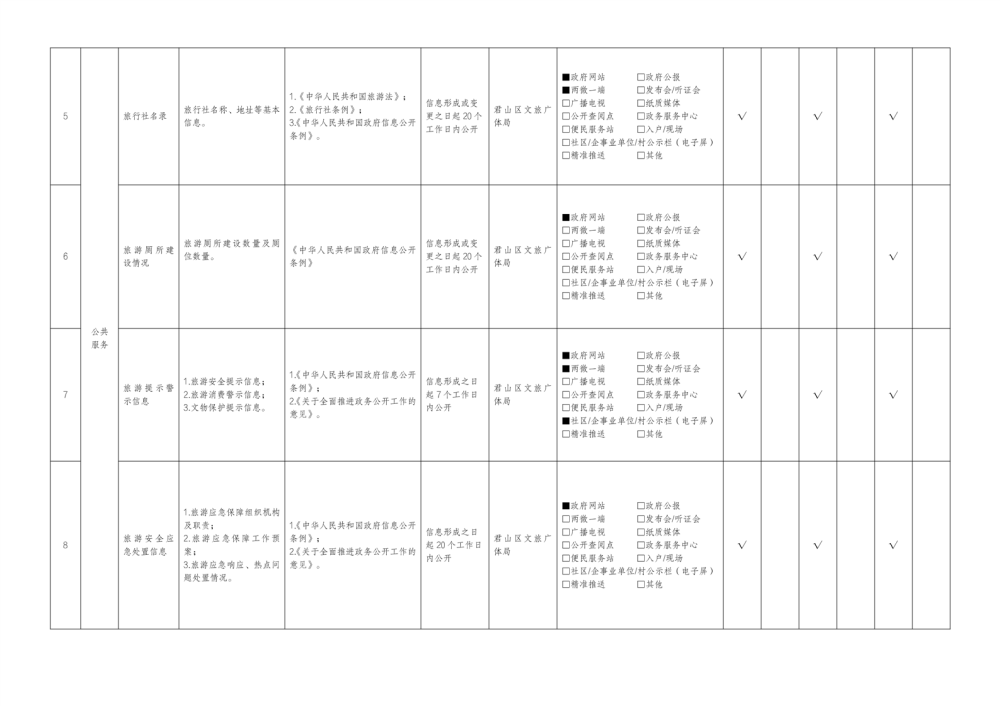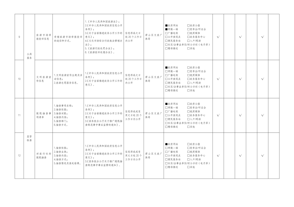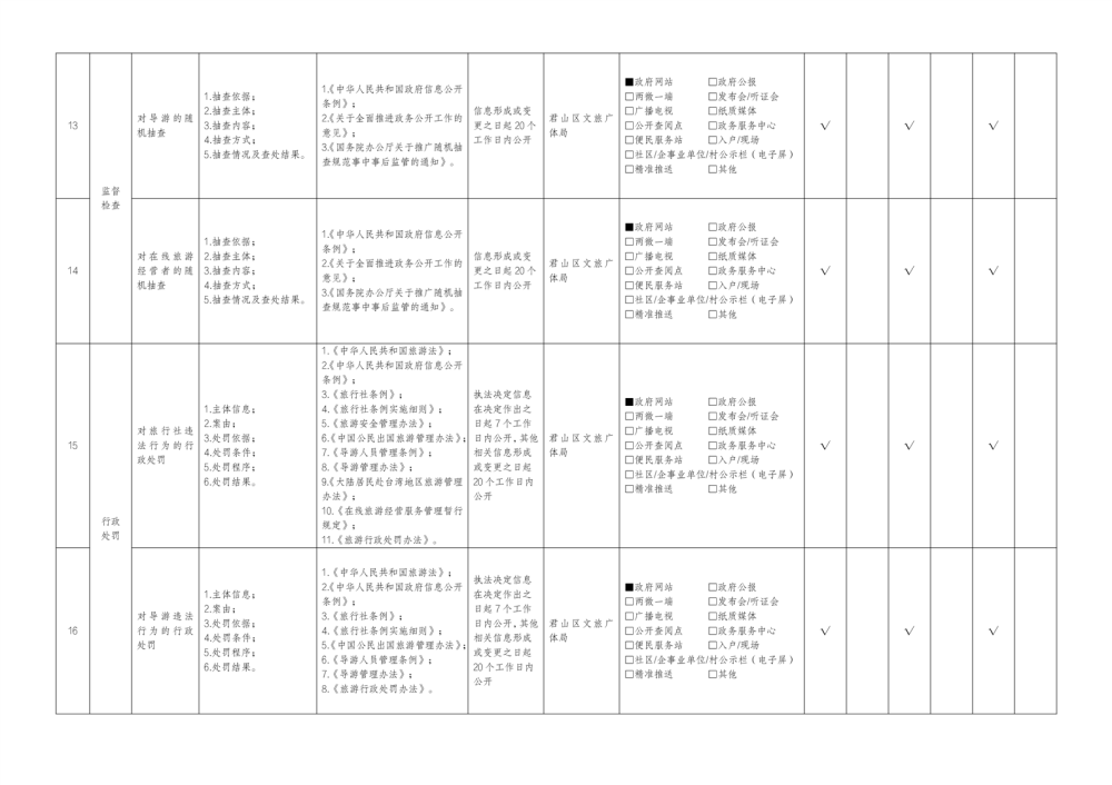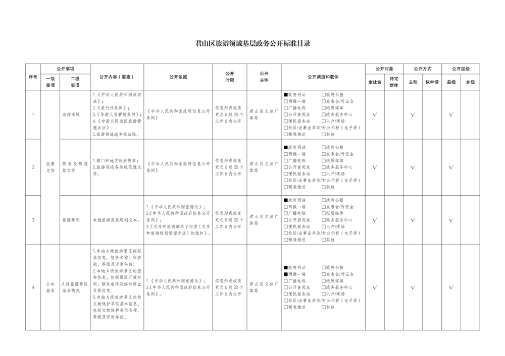 君山區(qū)旅游領(lǐng)域基層政務(wù)公開標(biāo)準(zhǔn)目錄(2025年)